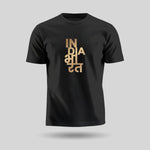 India Bharat Vertical | Gold Foil Round Neck Unisex T-Shirt | Pure Cotton Luv My India Fashion | Patriotic T-Shirt