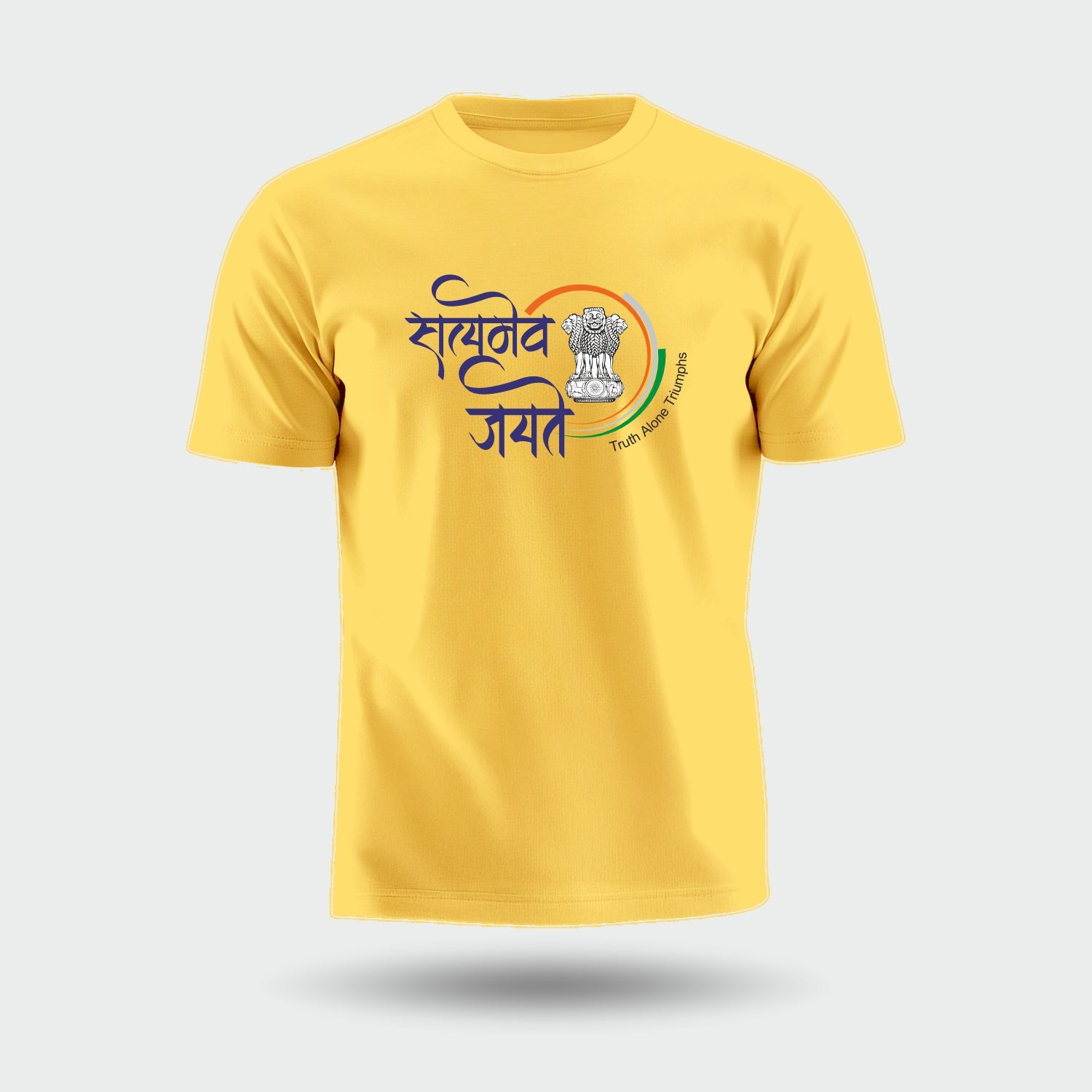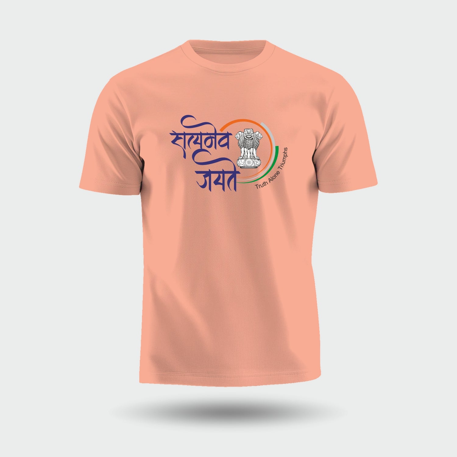 Wear your values loud and proud with Luv My India's Satyameva Jayate themed round neck pure cotton unisex T-Shirt. Crafted in pure, premium cotton with an impeccably soft finish, it is a bold tribute to India’s timeless national motto: Truth Alone Triumphs.
