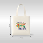 150 Years Of Vande Mataram | Patriotic Curated Combo | Round Neck Pure Cotton White Unisex T-Shirt | 4x4 CM Round Badges | 14x16 Inch Cotton Canvas Tote Bag