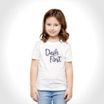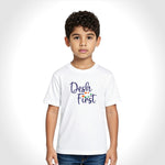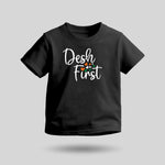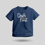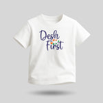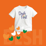 Luv My India's Desh First design round neck unisex pure cotton white patriotic kids T-Shirt is a reminder that patriotism is our common thread, strong, proud and indivisible. Wear it as a symbol of the bond that unites us all, the love for India.