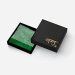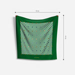 Celebrate India’s spirit with Luv My India’s 33x33 cm digital print Bemberg Silk Pocket Square, designed in Green with bold diagonal stripes and dotted accents in blue and orange. The rhythmic pattern draws inspiration from India’s tricolour, symbolising courage, growth and truth. Crafted from soft bemberg modal for a smooth, lustrous finish, this piece blends contemporary minimalism with patriotic elegance.