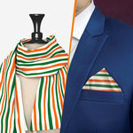 Luv My India’s Waves of Tricolour Scarf & Pocket Square Combo Pack beautifully captures the spirit of freedom and unity flowing through every Indian heart. Designed in graceful waves of saffron, white and green, the pattern mirrors the movement of the Indian flag in a gentle breeze. Crafted in soft Bemberg Silk, the 150x45 cm Scarf and 33x33 cm Pocket Square bring together elegance and emotion of a nation rising with grace, harmony and strength.