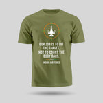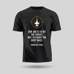 Target Acquired. Featuring the iconic IAF statement: 'Our job is to hit the target, not to count body bags,' this Luv My India round neck t-Shirt embodies precision and purpose.