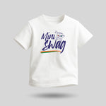 Let your child wear their patriotism proudly with Luv My India Mini Swag India themed round neck T-Shirt. This pure cotton white unisex T-Shirt for kids celebrates the freedom and patriotism of young hearts in India.