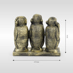 Celebrate ancient wisdom with Luv My India's beautifully crafted 4.75x4 inch Three Wise Monkeys elegant sculpture. Made with a mixture of resin and marble powder, each monkey embodies a powerful message to protect our minds and hearts from negativity by choosing what we see, hear and speak. A perfect gift and personal treasure, this sculpture adds a touch of thoughtful elegance to any space.