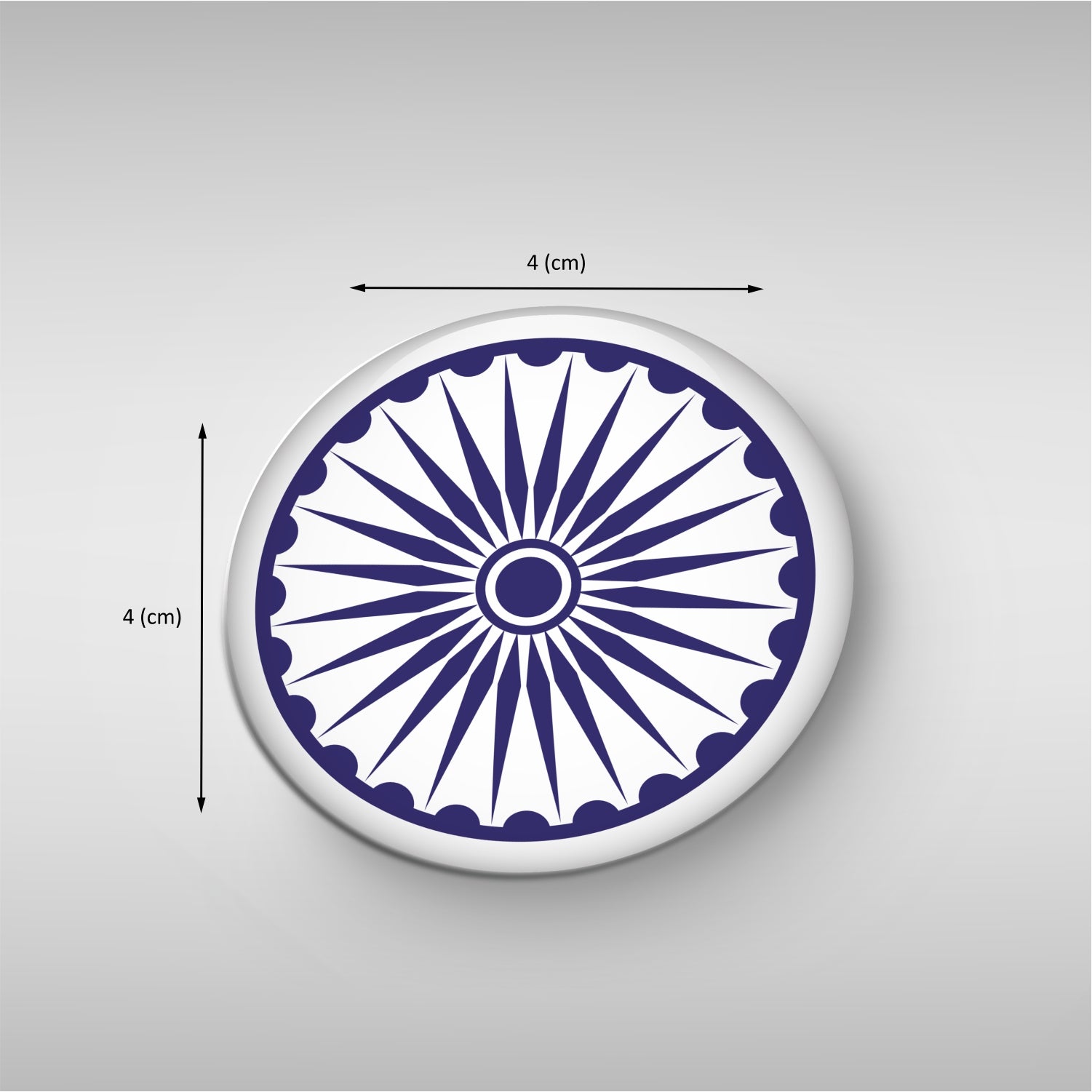 Luv My India's Ashoka Chakra 4x4 cm. patriotic Round Badge reminds us to keep moving forward with courage, truth and duty. Standing as the heartbeat of our Tiranga, now you can wear it with pride.