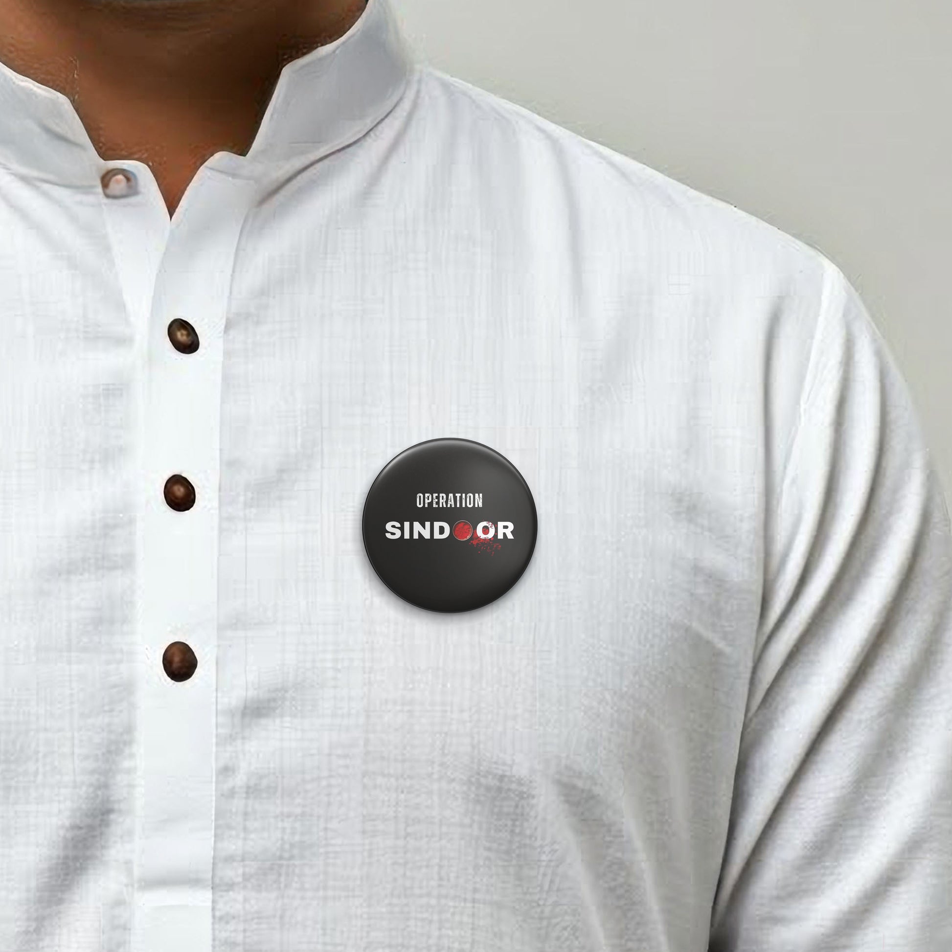 Luv My India's Operation Sindoor design 4x4 cm. patriotic Round Badge celebrates the fearless spirit of our soldiers. It is a striking symbol of their courage designed to honour the valiant efforts of our armed forces. Pin it and let your patriotism shine with pride.