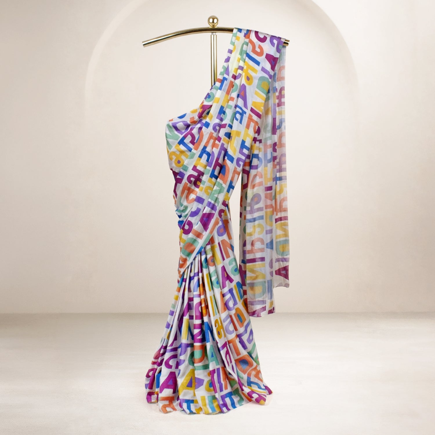 Patriotism isn’t reserved for a single day - it lives in our language, our stories, and the way we express who we are. The India Bharat Multicolour Satin Saree celebrates this everyday pride through bold, multicolour digital prints of “India” and “भारत,” coming together in a rhythm that reflects unity in diversity. Crafted in smooth satin with a graceful sheen, this saree is designed for cultural gatherings, meaningful moments, and days when you simply want to wear your love for the nation with confidence and style.