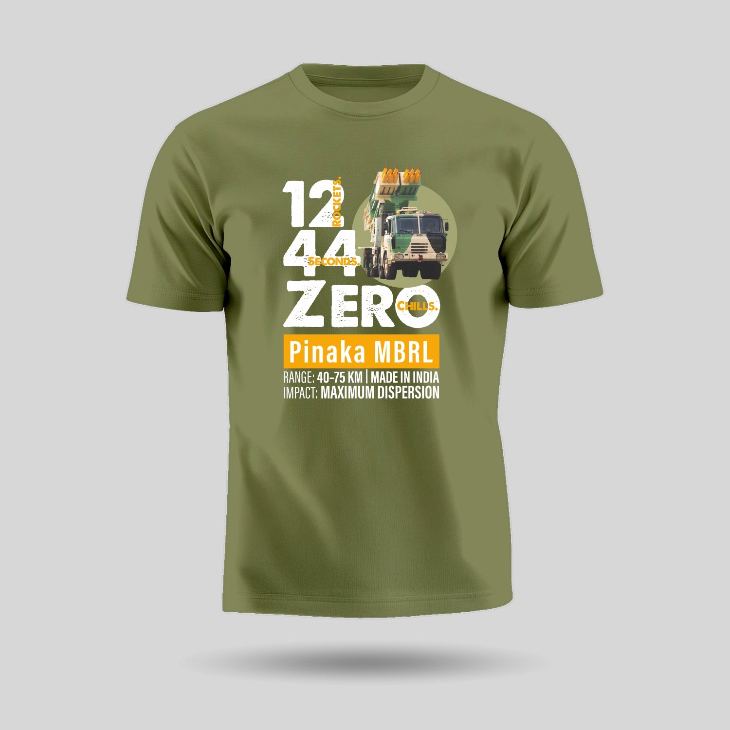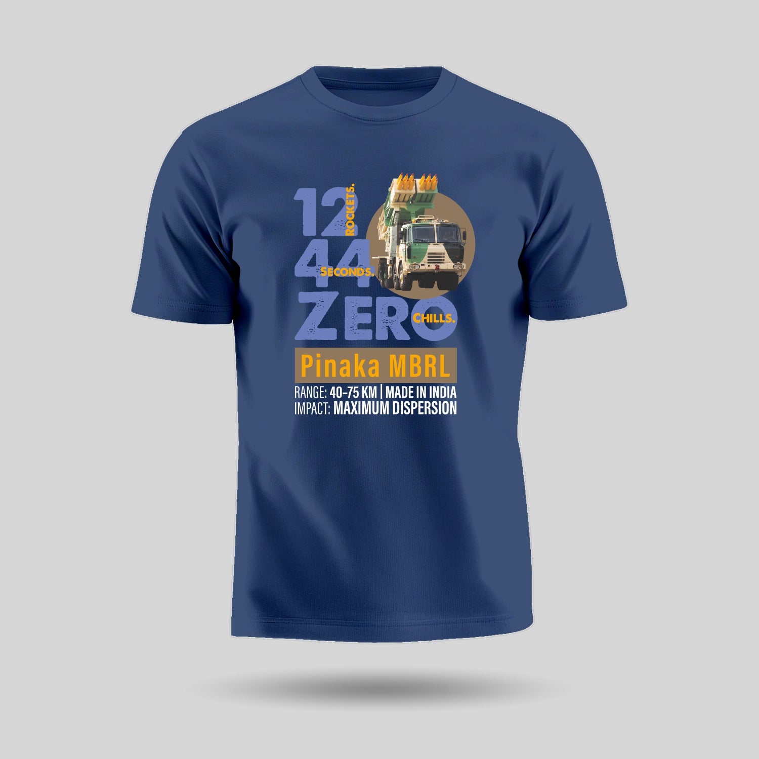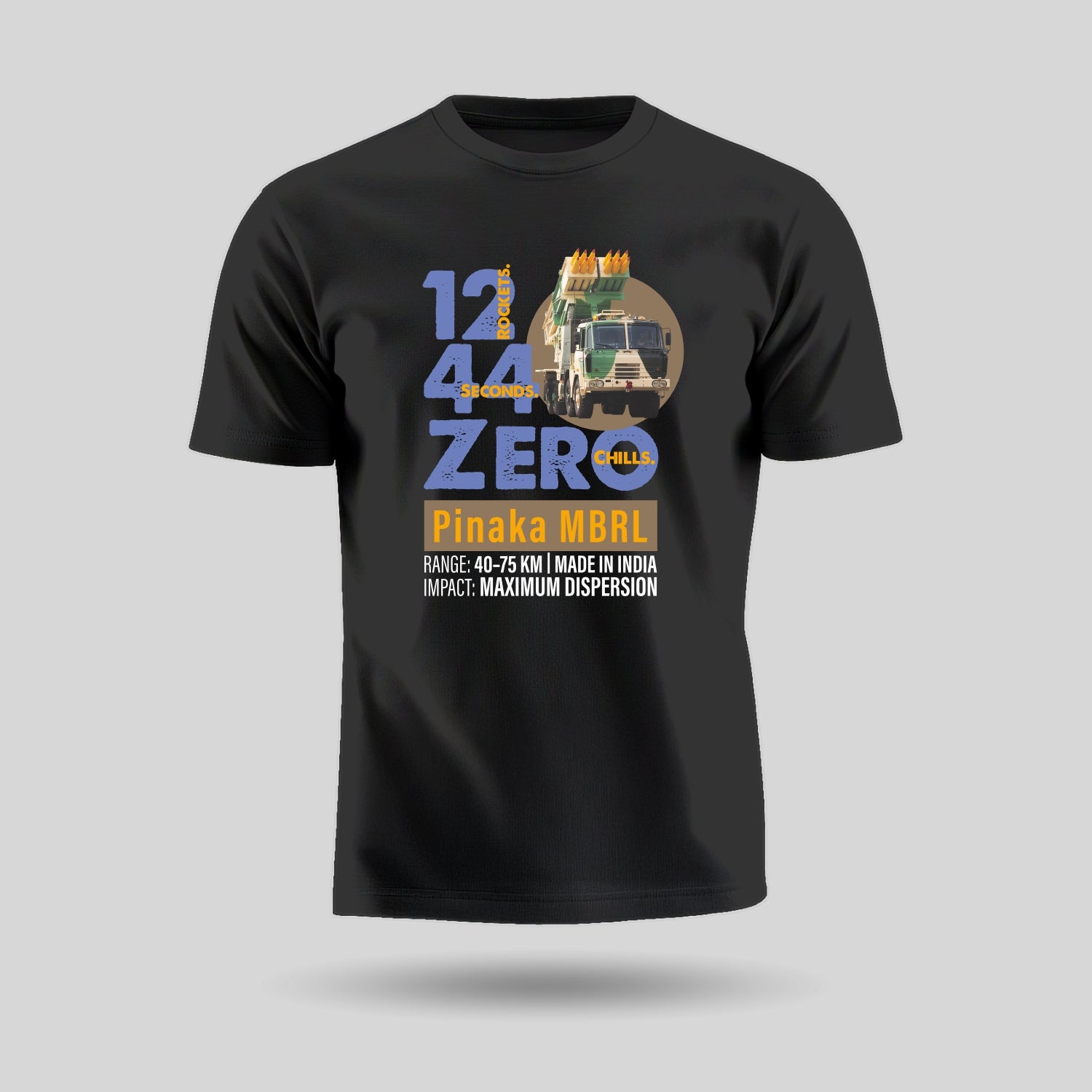 Luv My India's Pinaka MBRL pure cotton round neck unisex T-Shirt roars with the thunder of India’s indigenously developed multiple barrel rocket launcher system that rewrote the rules of battlefield supremacy. Named after Lord Shiva’s divine bow, the Pinaka rains precision firepower over enemy positions with unmatched speed and intensity.