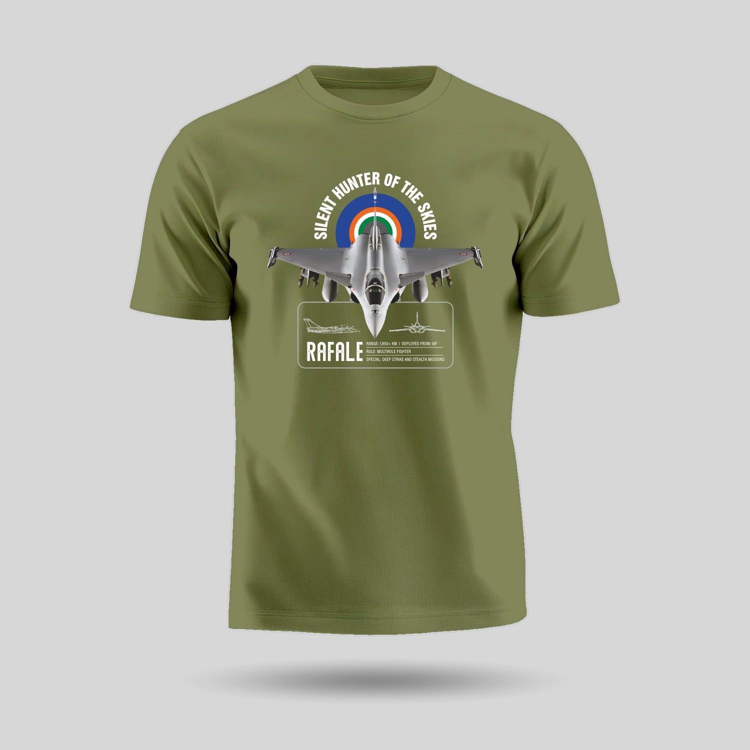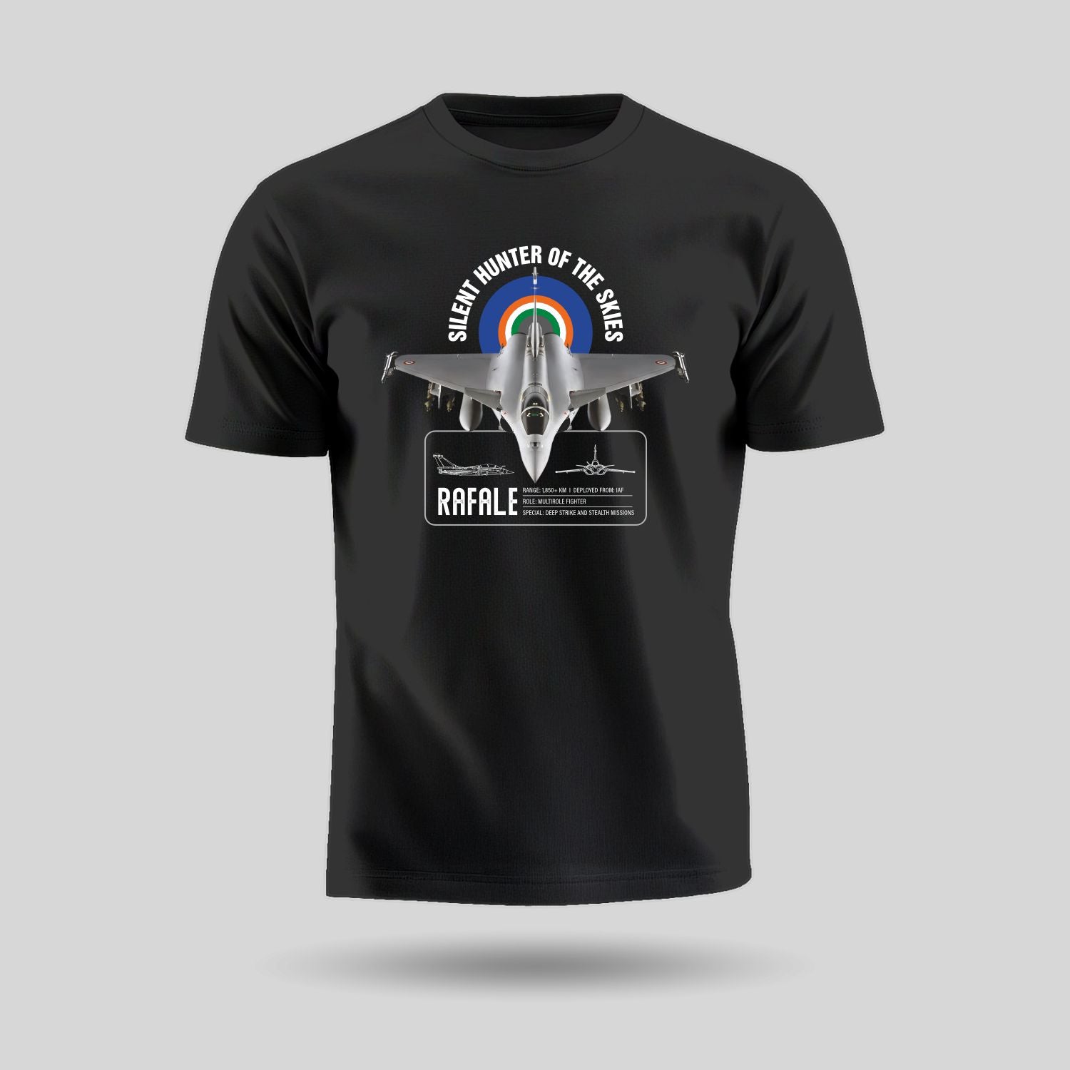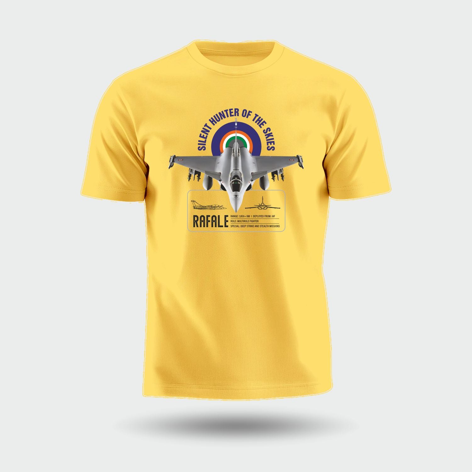 Luv My India's Rafale tribute pure cotton round neck unisex T-Shirt carries the weight of national pride and the dreams of a stronger, safer India. Sleek, fierce and unshakably precise — the Rafale isn’t just a fighter jet; it’s a symbol of India’s decisive air power and a message that echoes beyond borders.