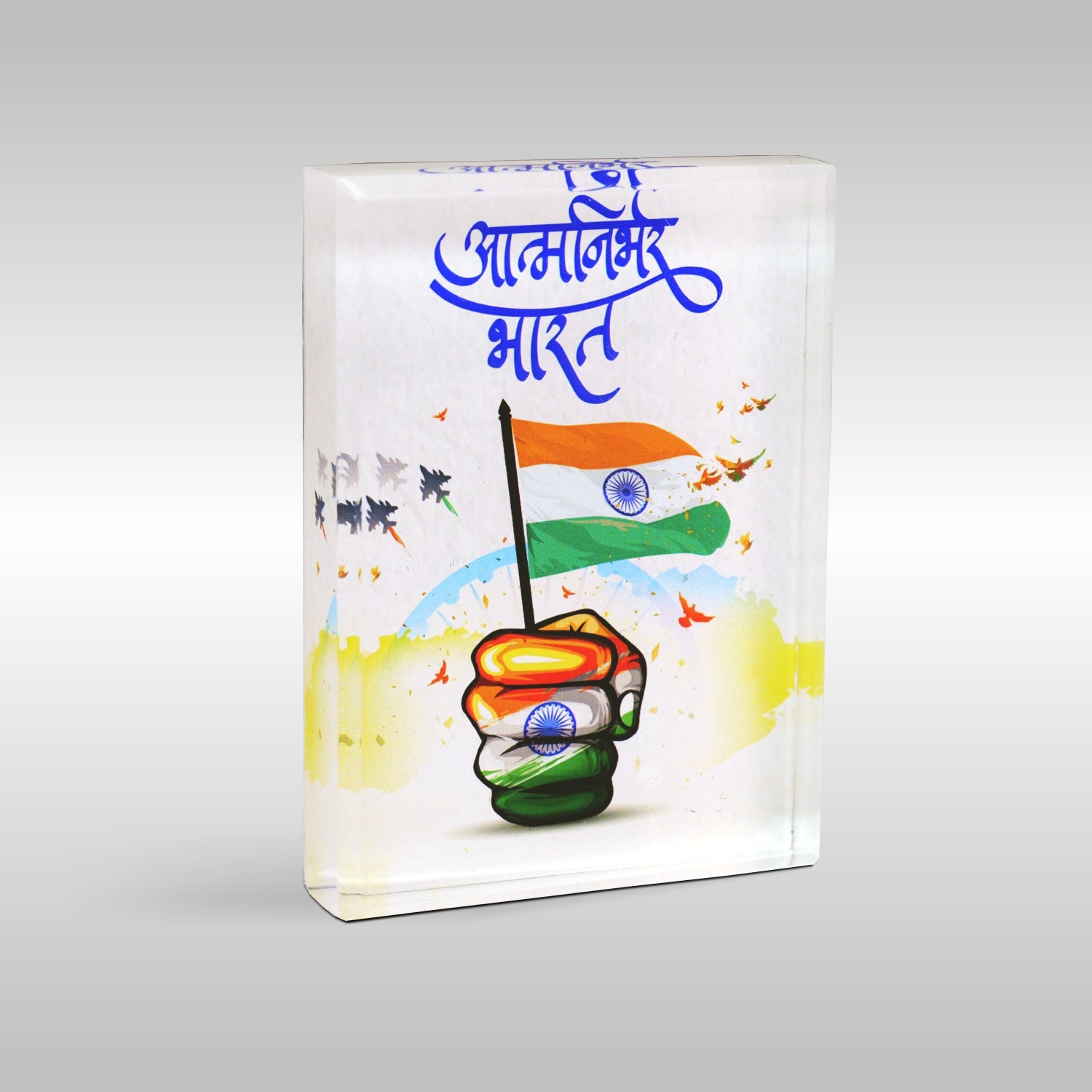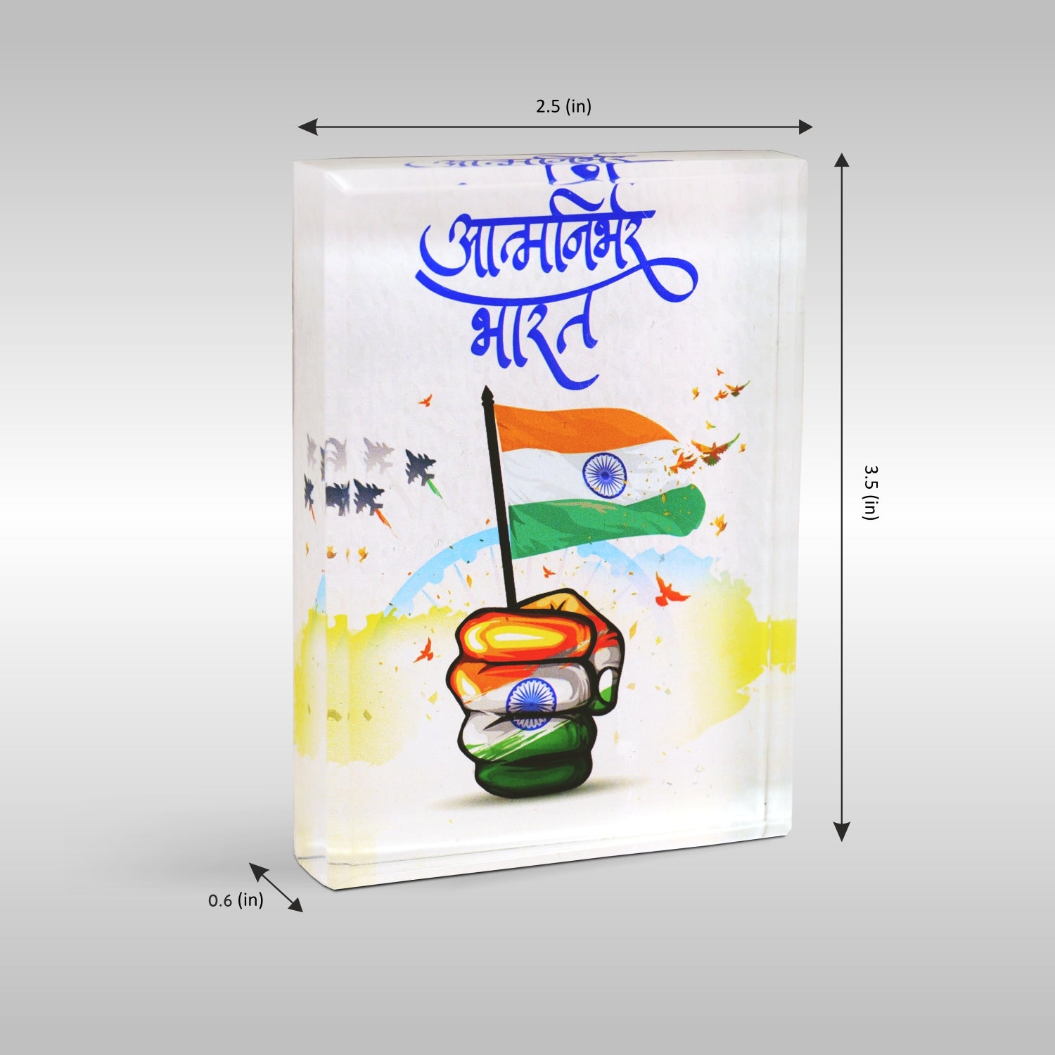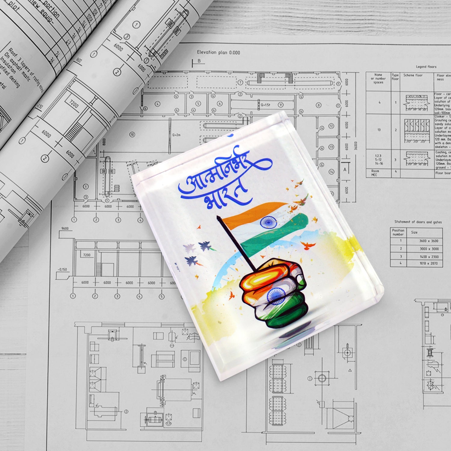 Luv My India’s Atmanirbhar Bharat with National Flag 2.5x3.5 inch Patriotic Paperweight is a daily reminder that Bharat has everything it takes to build, create and lead on its own terms. Whether it’s made-in-India products or made-for-India ideas, this simple yet powerful design inspires confidence and commitment to nation-first thinking. Crafted in India with quality materials, it is sturdy, fade-resistant and radiates vibrancy just like the spirit of our Tricolour.