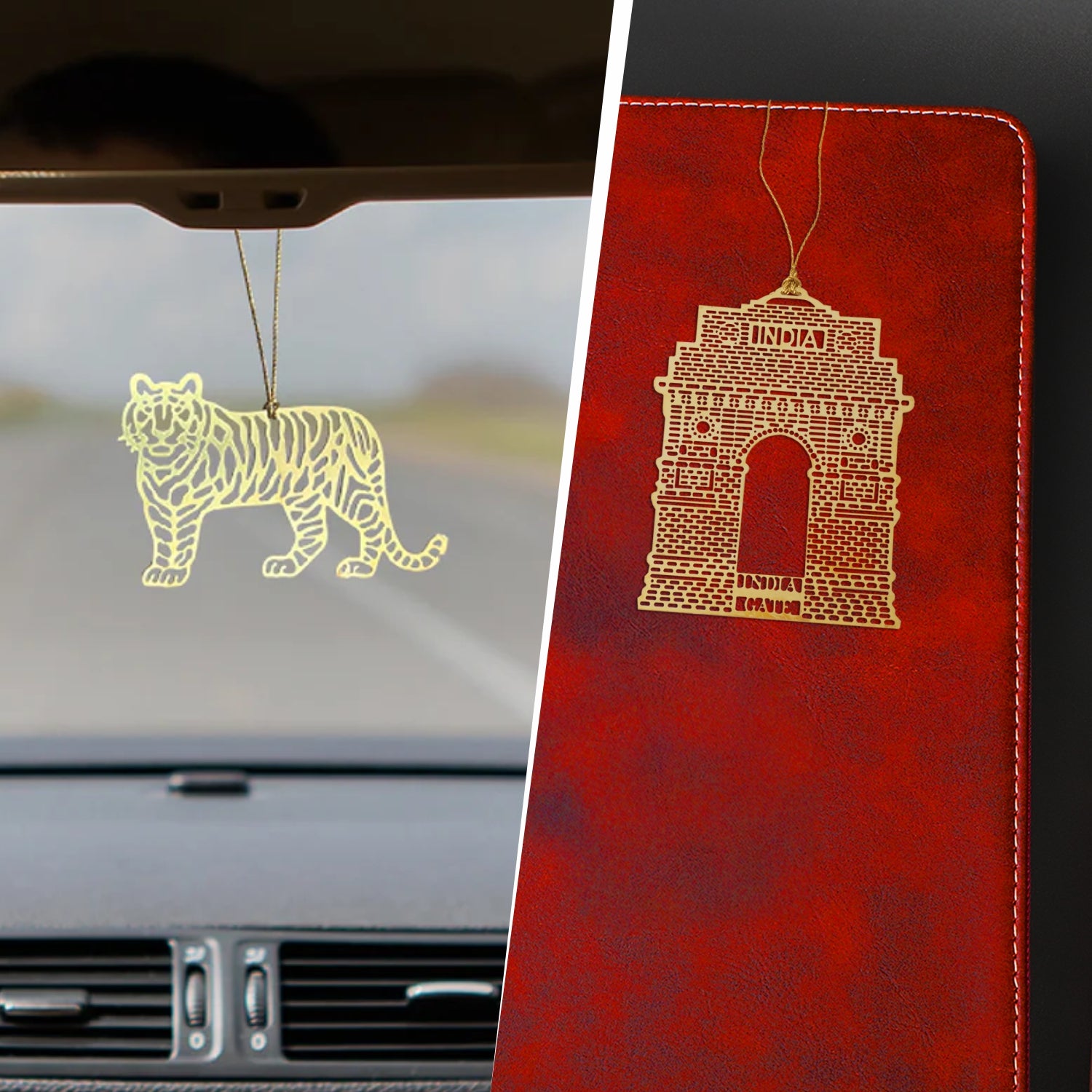 Patriotic Bookmark Set | Luv My India Bookmarks | 2.5x2 Inch Tiger Bookmark | 2x3 Inch India Gate Bookmark | Brass Bookmarks | Curated Pack Of 2