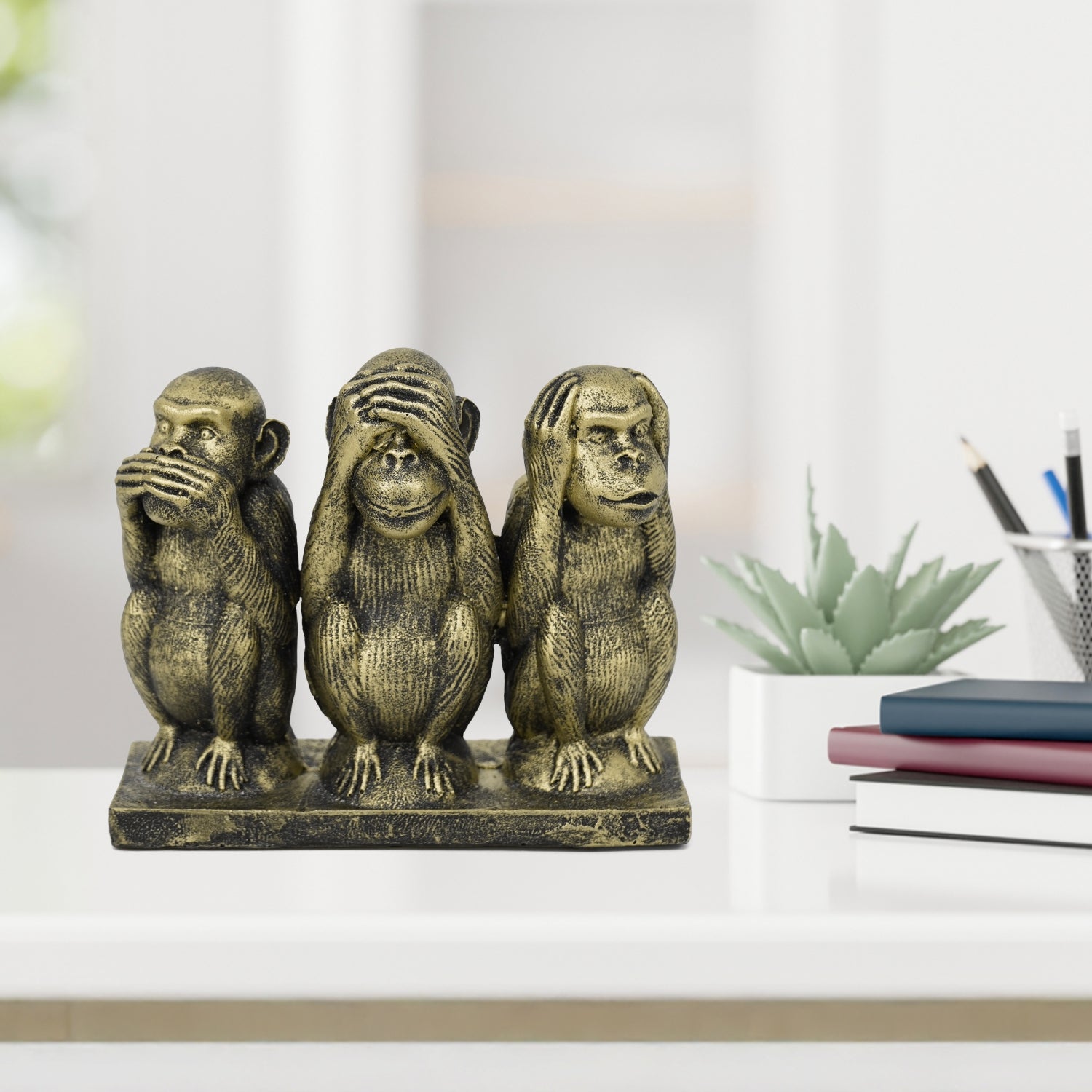 Celebrate ancient wisdom with Luv My India's beautifully crafted 4.75x4 inch Three Wise Monkeys elegant sculpture. Made with a mixture of resin and marble powder, each monkey embodies a powerful message to protect our minds and hearts from negativity by choosing what we see, hear and speak. A perfect gift and personal treasure, this sculpture adds a touch of thoughtful elegance to any space.