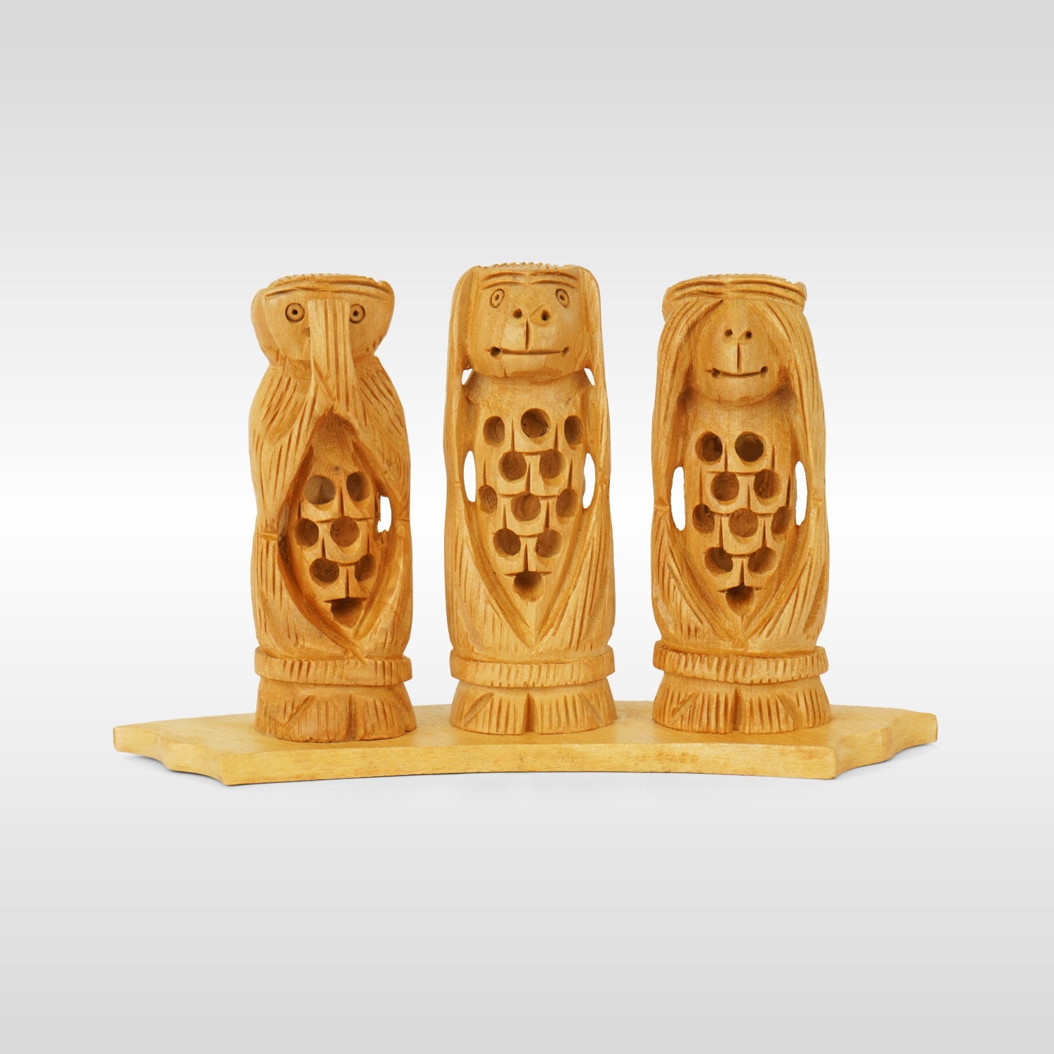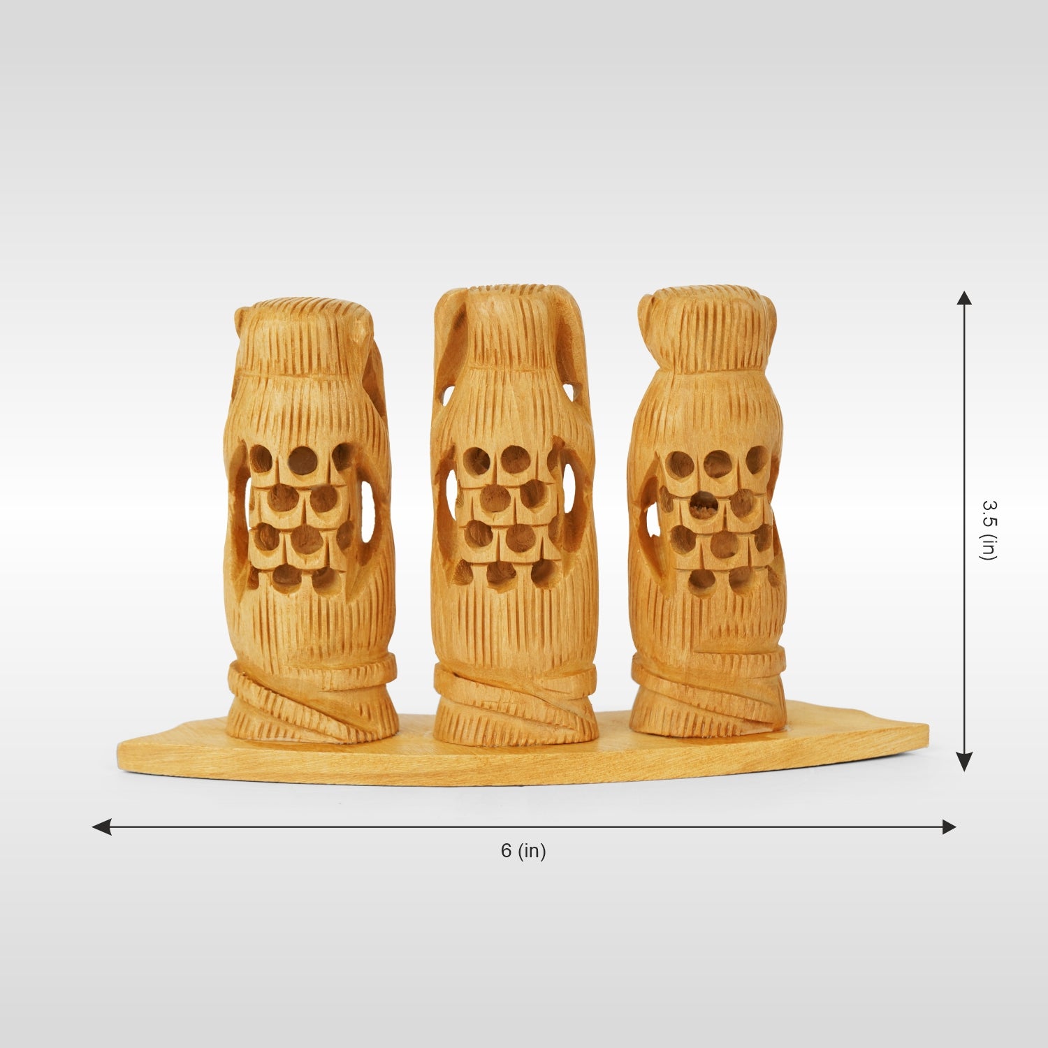 Celebrate ancient wisdom with Luv My India's beautifully crafted 6x3.5 inch Three Wise Monkeys wooden sculpture. Each monkey embodies a powerful message to protect our minds and hearts from negativity by choosing what we see, hear and speak. A perfect gift and personal treasure, this sculpture adds a touch of thoughtful elegance to any space.