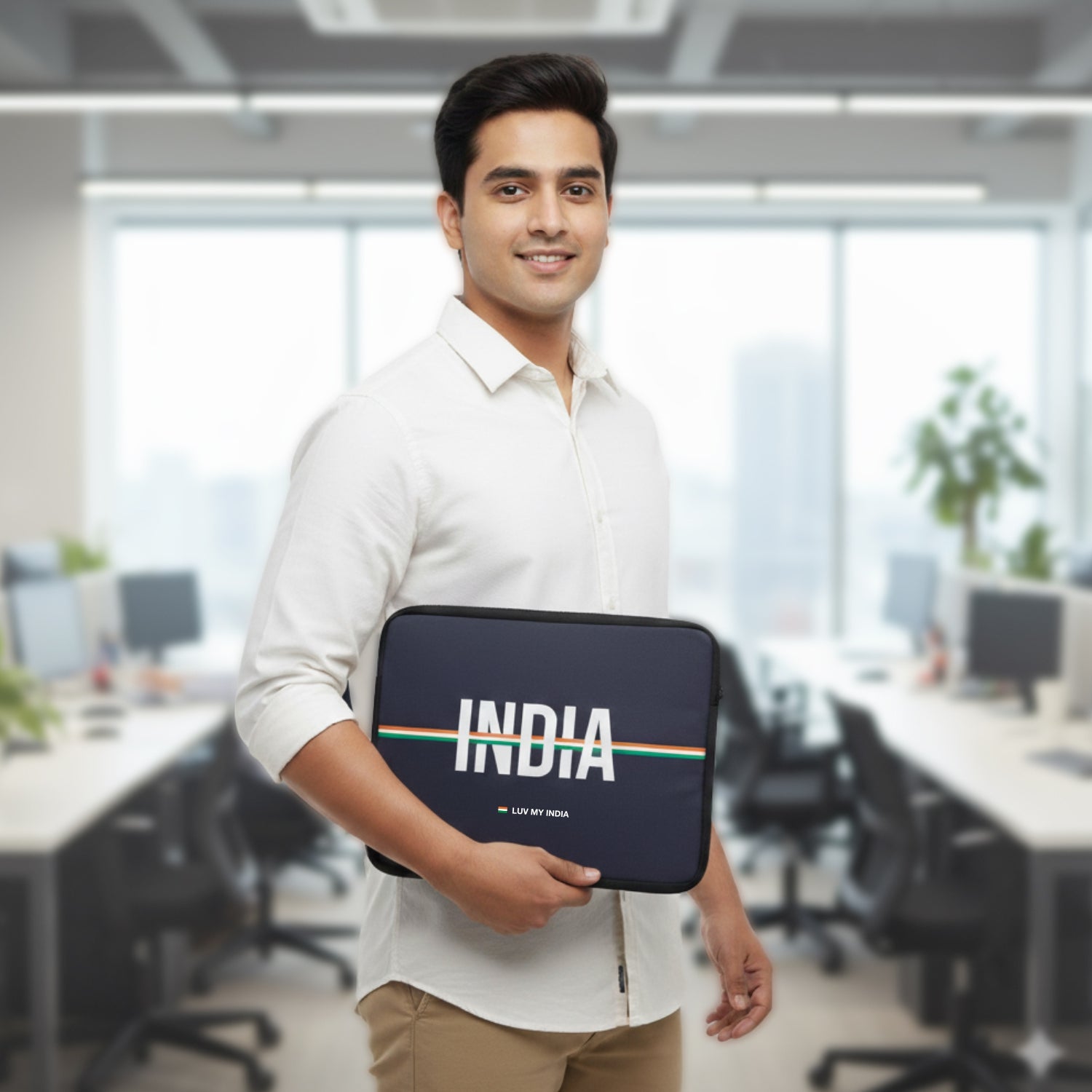 Let the world know your love for India with Luv My India's stylish and striking India themed black Laptop Sleeve Bag, representing a nation working towards a bright and prosperous future.