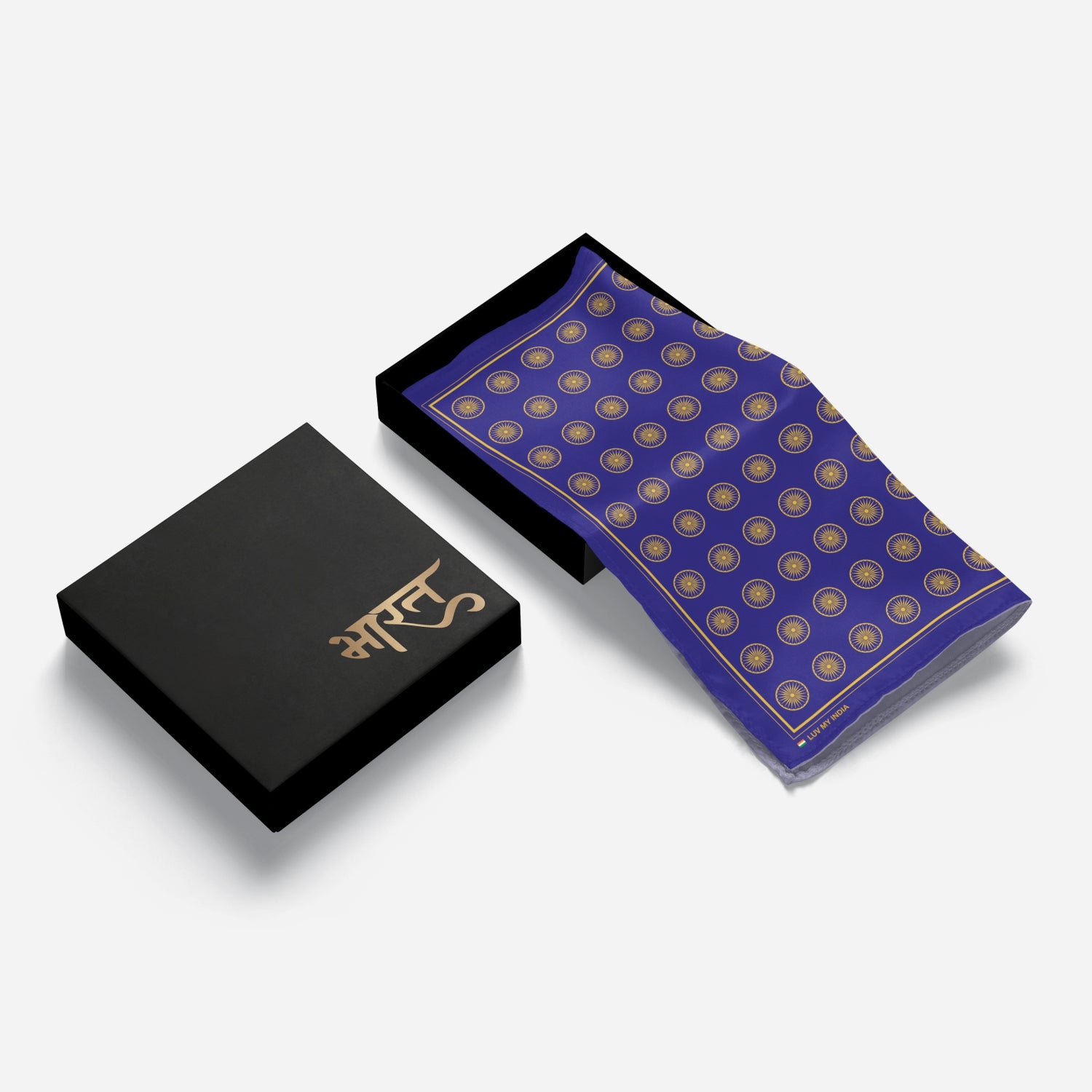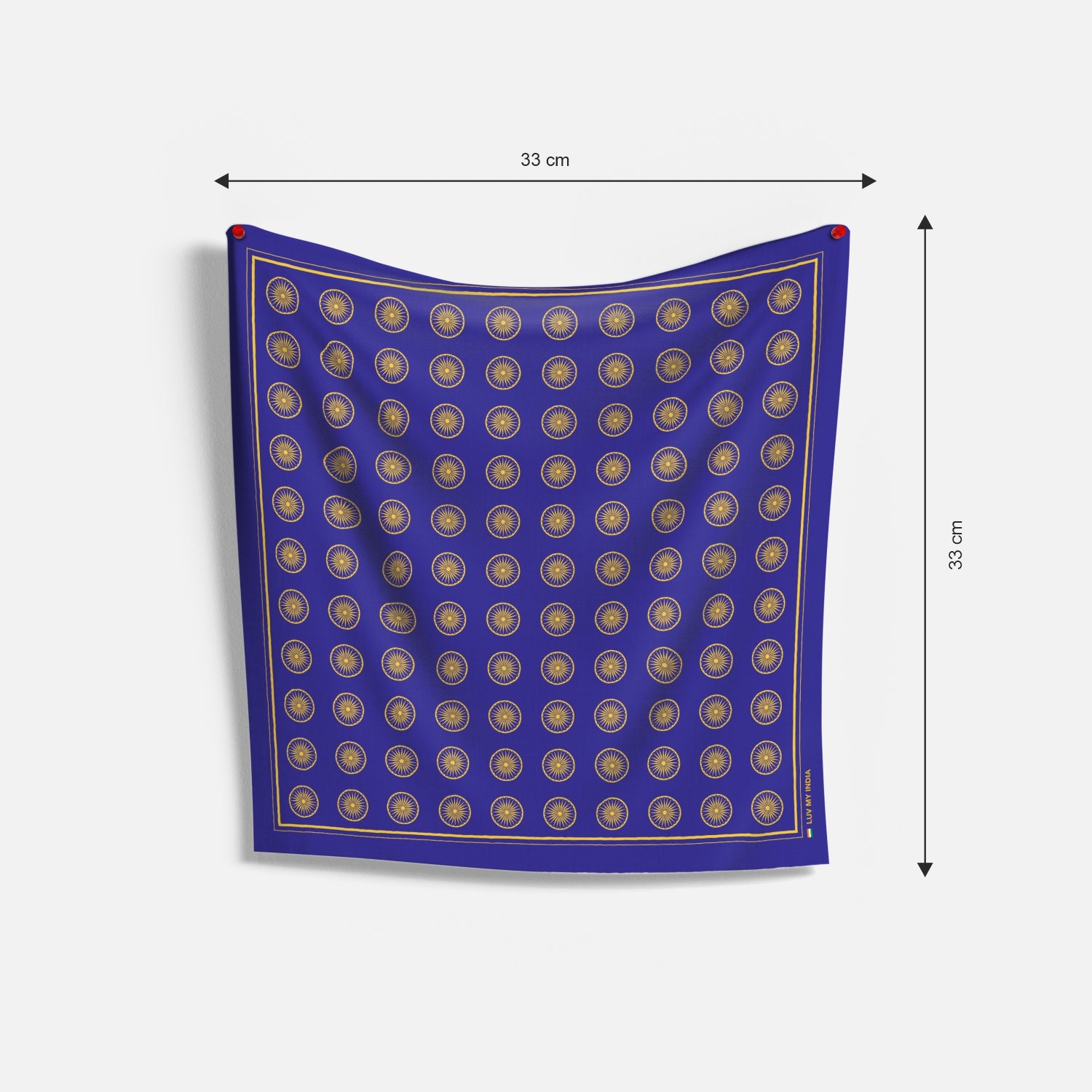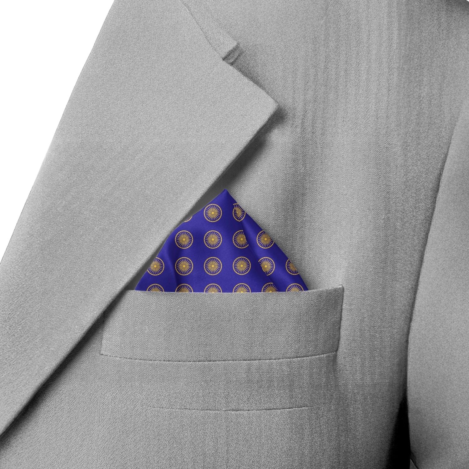 Crafted with care and meaning, Luv My India's 33x33 cm Ashok Chakra digital print Bemberg Vegan Silk Pocket Square is more than just a fashion accessory — it’s a tribute to the ideals that define India. Featuring India’s revered symbol of dharma and motion at its heart, this pocket square blends subtle elegance with profound meaning, making a statement that is as timeless as the nation’s values.