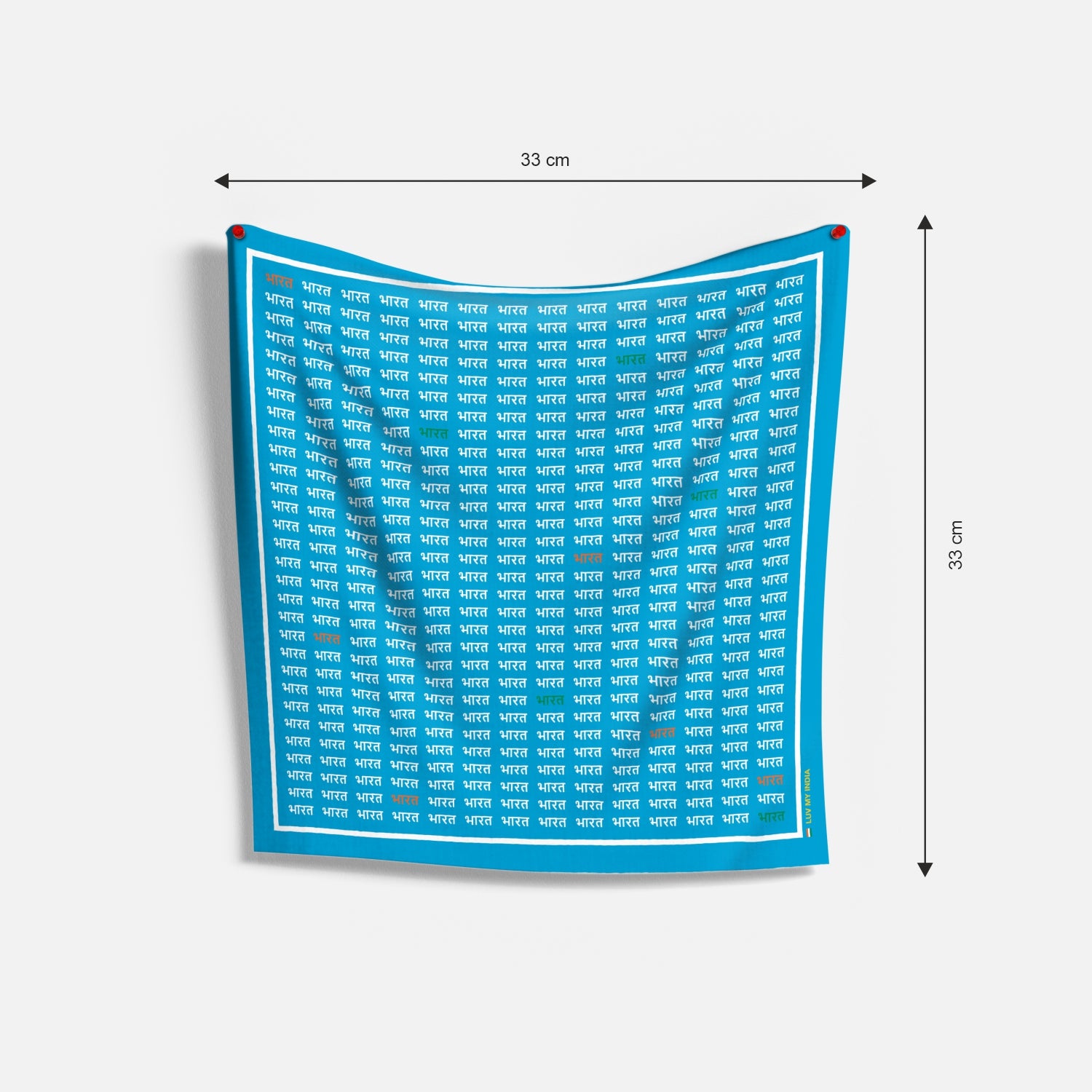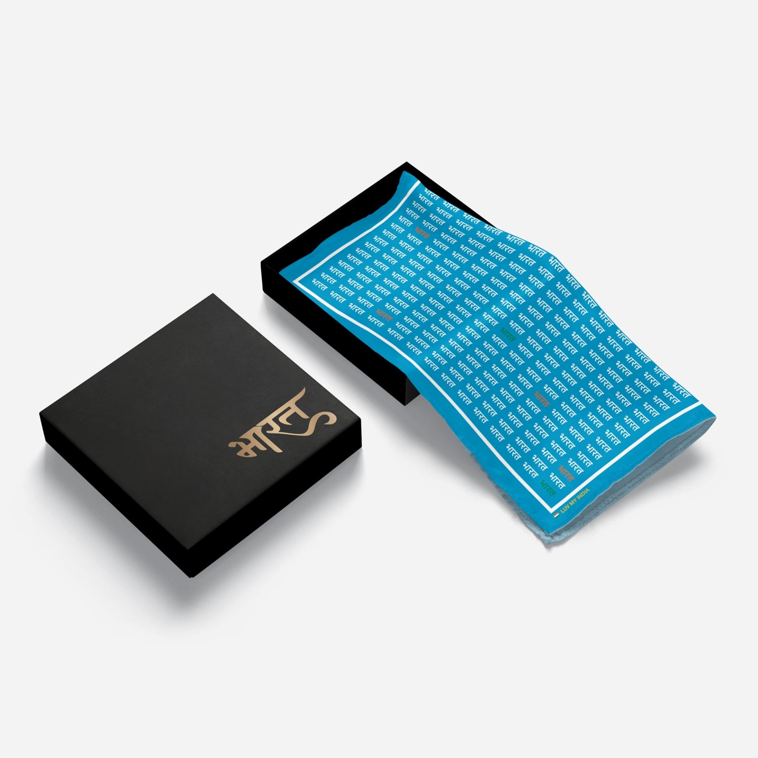 Luv My India's 33x33 cm Bharat themed digital print Bemberg Vegan Silk blue Pocket Square is designed to turn heads and hearts with its graceful blend of national pride and everyday versatility. Whether you're attending a celebration, gifting it to a loved one or simply stepping out with style, this Pocket Square transforms any occasion into a statement of patriotism and sophistication.