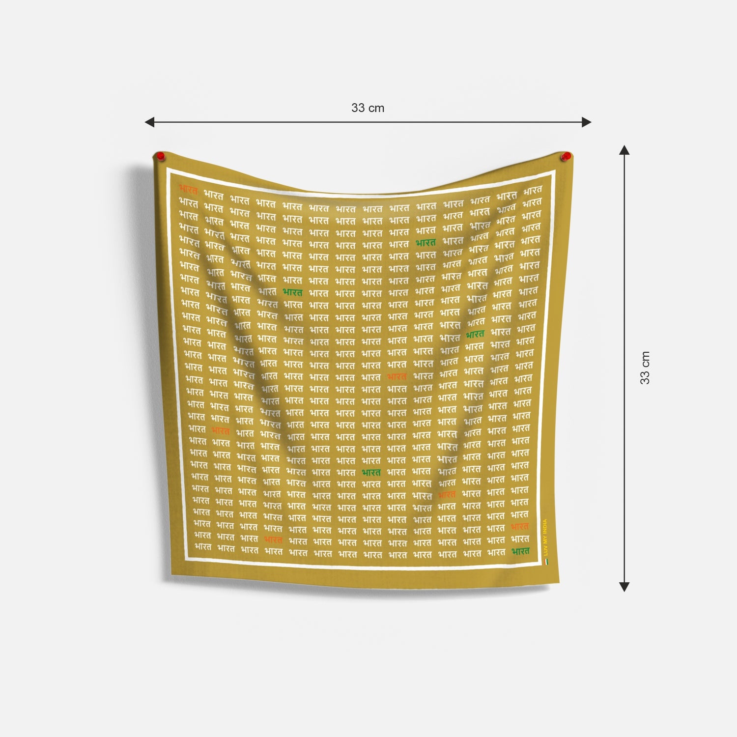 Luv My India's 33x33 cm Bharat themed digital print Bemberg Vegan Silk golden Pocket Square is designed to turn heads and hearts with its graceful blend of national pride and everyday versatility. Whether you're attending a celebration, gifting it to a loved one or simply stepping out with style, this Pocket Square transforms any occasion into a statement of patriotism and sophistication.