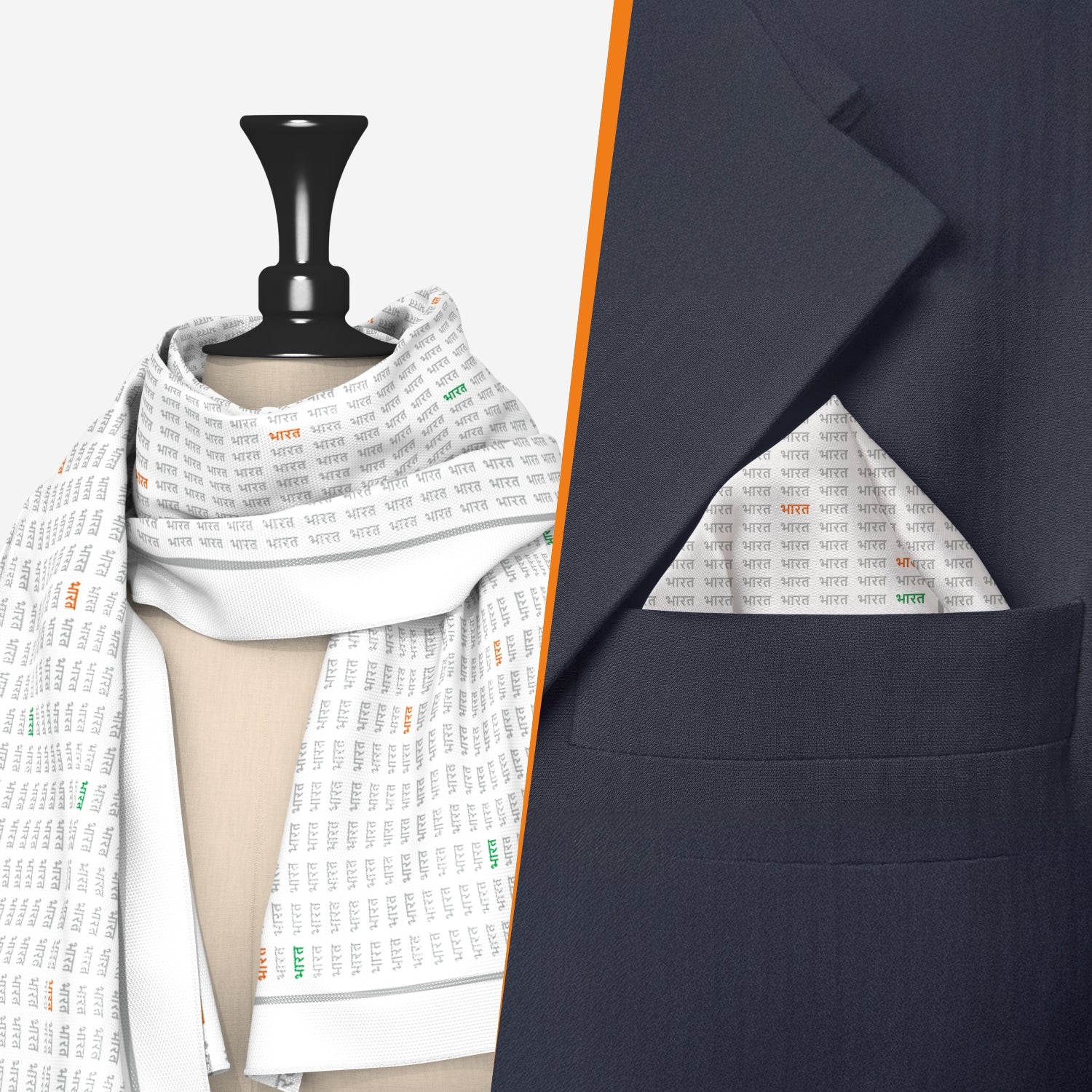 Luv My India presents the Bharat-Themed Pocket Square & Scarf Combo Pack, an elegant fusion of national pride and everyday versatility. Crafted to turn heads and touch hearts, this set adds a graceful touch to every occasion. Whether you’re celebrating a special moment, choosing a thoughtful gift or simply stepping out in style, the combo featuring a 150x45 cm Bemberg Vegan Silk Scarf and a 33x33 cm Bemberg Vegan Silk Pocket Square transforms your look into a timeless statement of patriotism and sophistication.