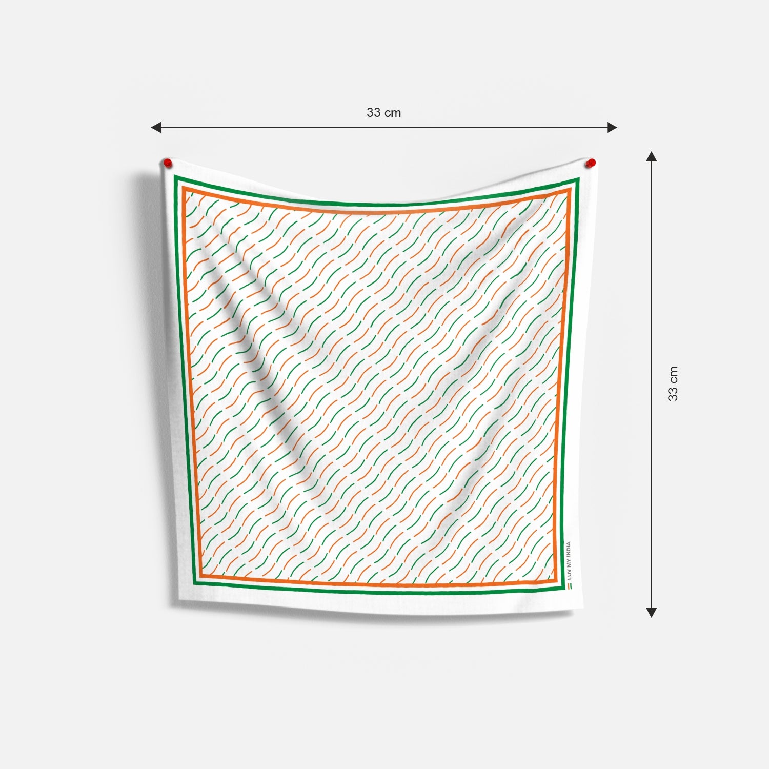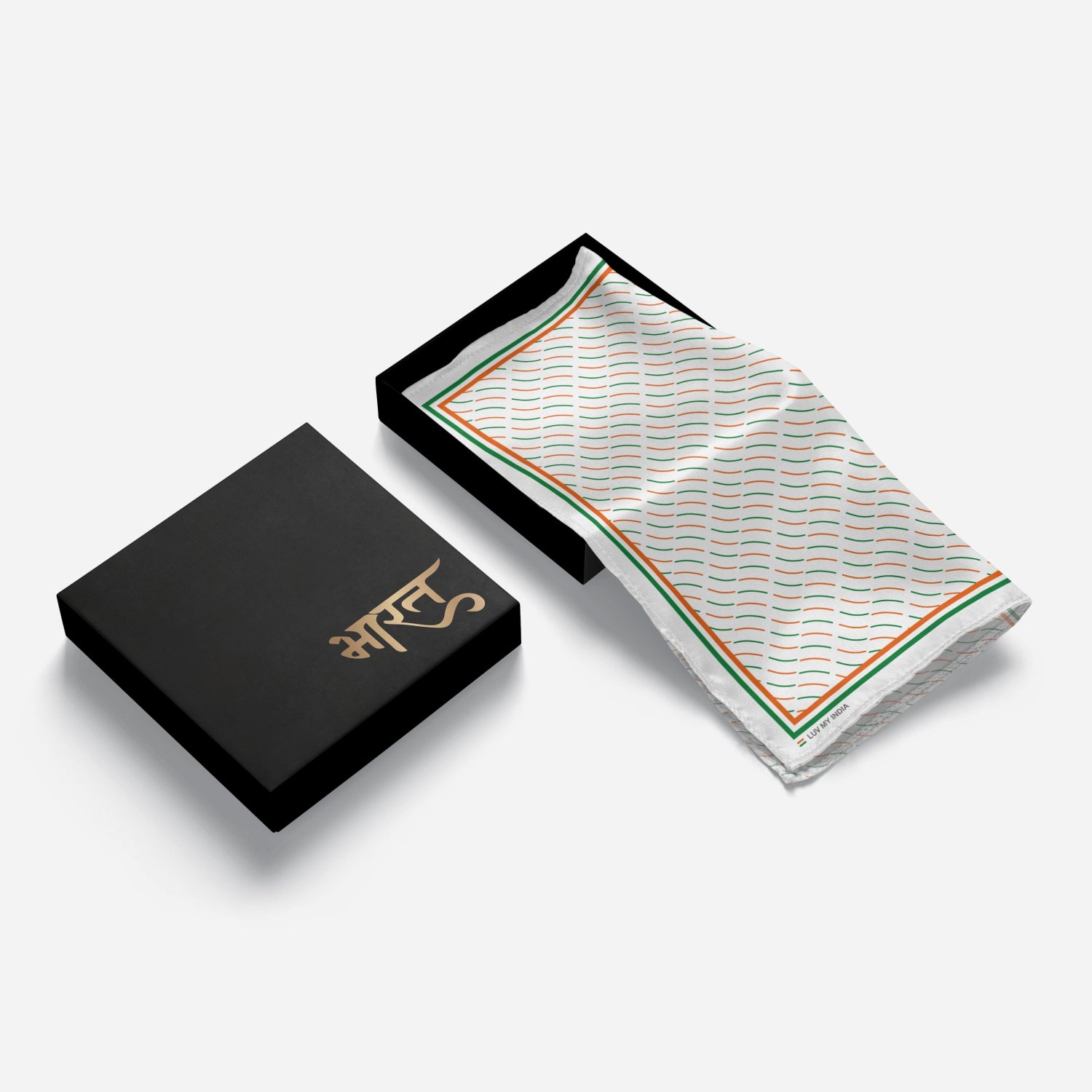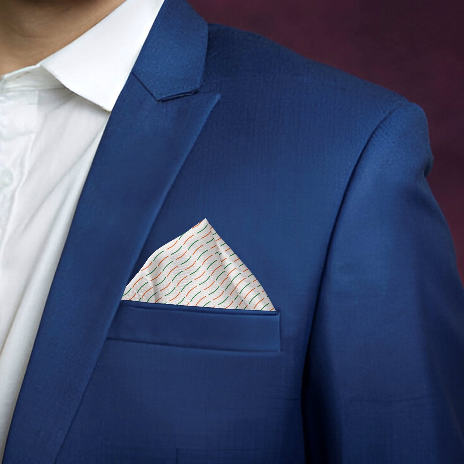 Flow with the spirit of the nation with Luv My India’s 33x33 cm digital print Bemberg Vegan Silk Pocket Square, designed in graceful lines of saffron, white and green. The pattern mirrors the unfurling of the Indian flag in the wind symbolising freedom, harmony and the ever-moving spirit of progress. Crafted with bemberg modal, this pocket square blends elegance with emotion, making it the perfect accessory for festive wear, patriotic occasions and timeless expressions of pride.
