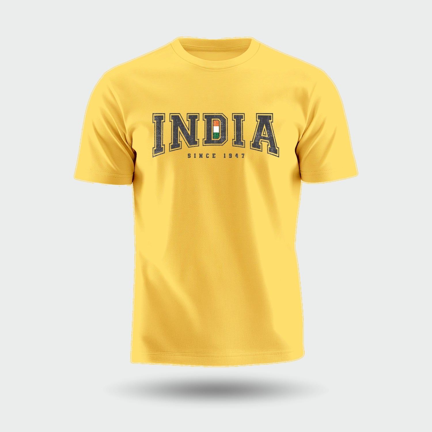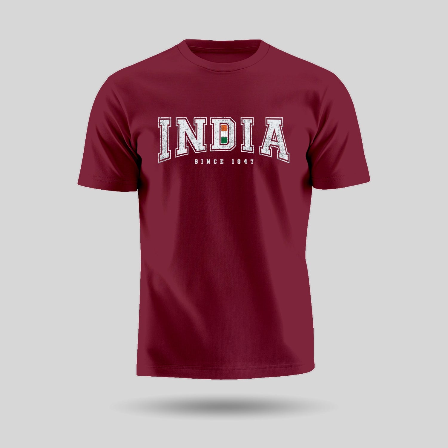 Luv My India's sleeky and stylish round neck pure cotton India 1947 unisex T-Shirt is a powerful reminder of India's struggle and triumph. It represents the country's historic year of independence by blending modern style with a deep sense of patriotism.