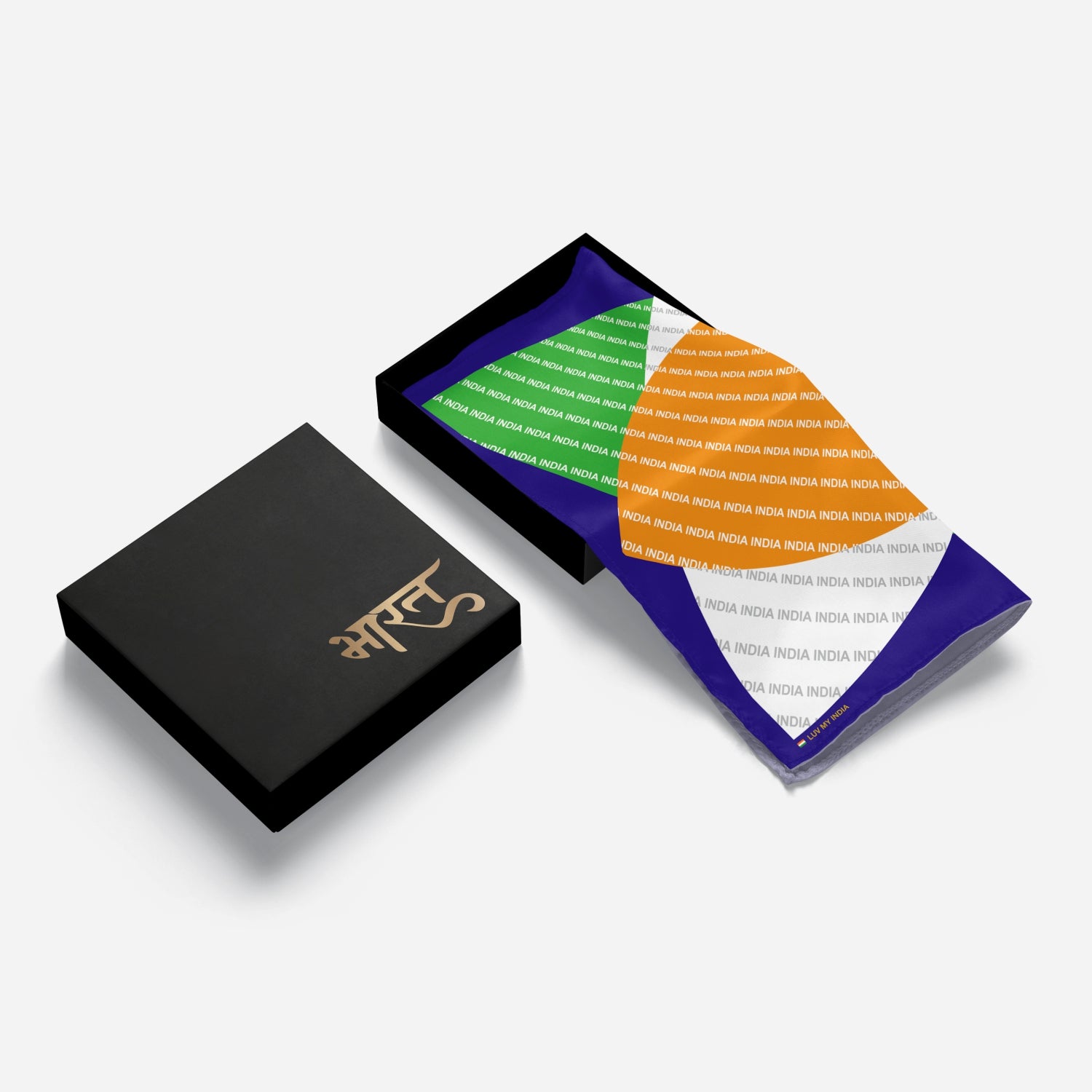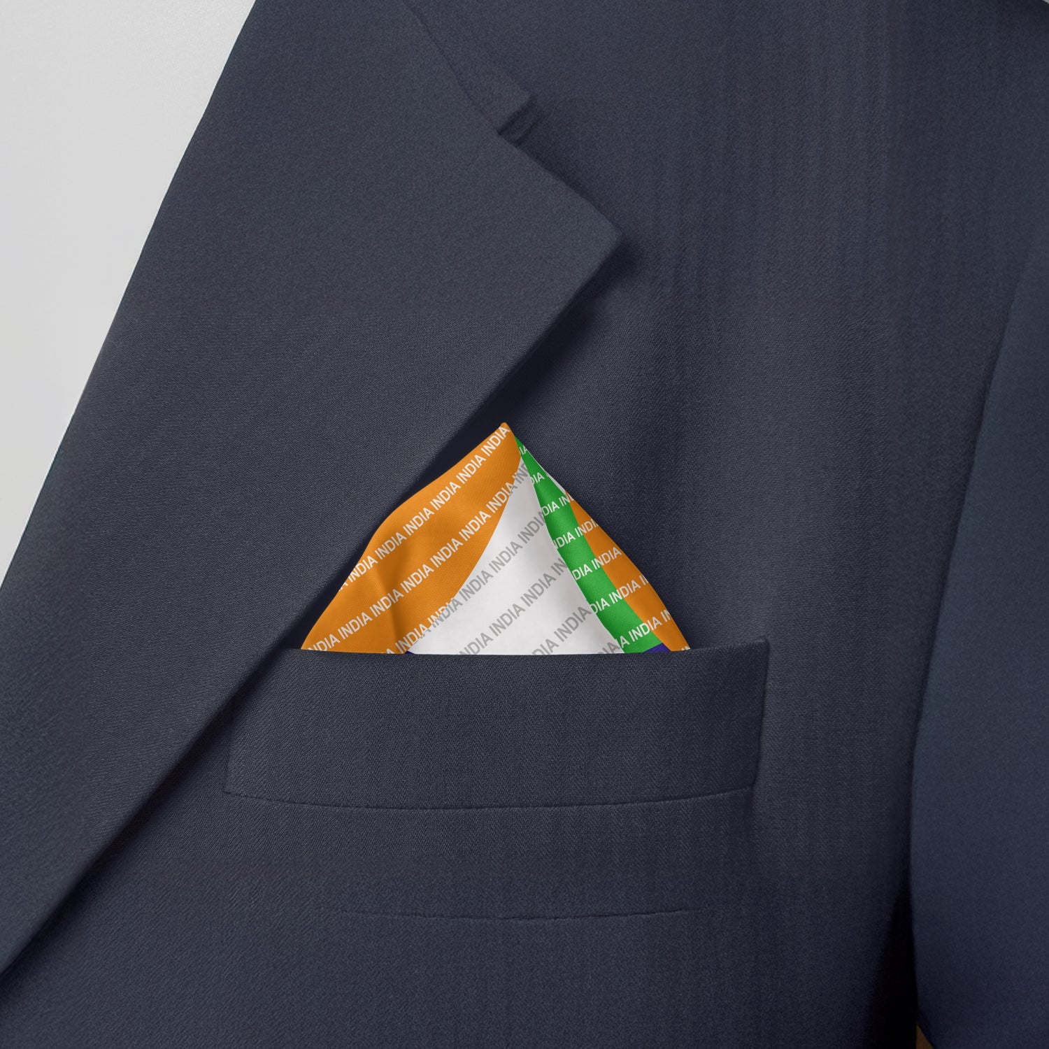 India is not one straight line, it is many paths moving together. Luv My India's 33x33 cm India Interwoven digital print Bemberg Vegan Silk Pocket Square captures this spirit through flowing tricolour forms that cross, overlap and rise as one. The repeated “India” motif quietly reminds us that every direction, every journey, ultimately leads back to the nation.