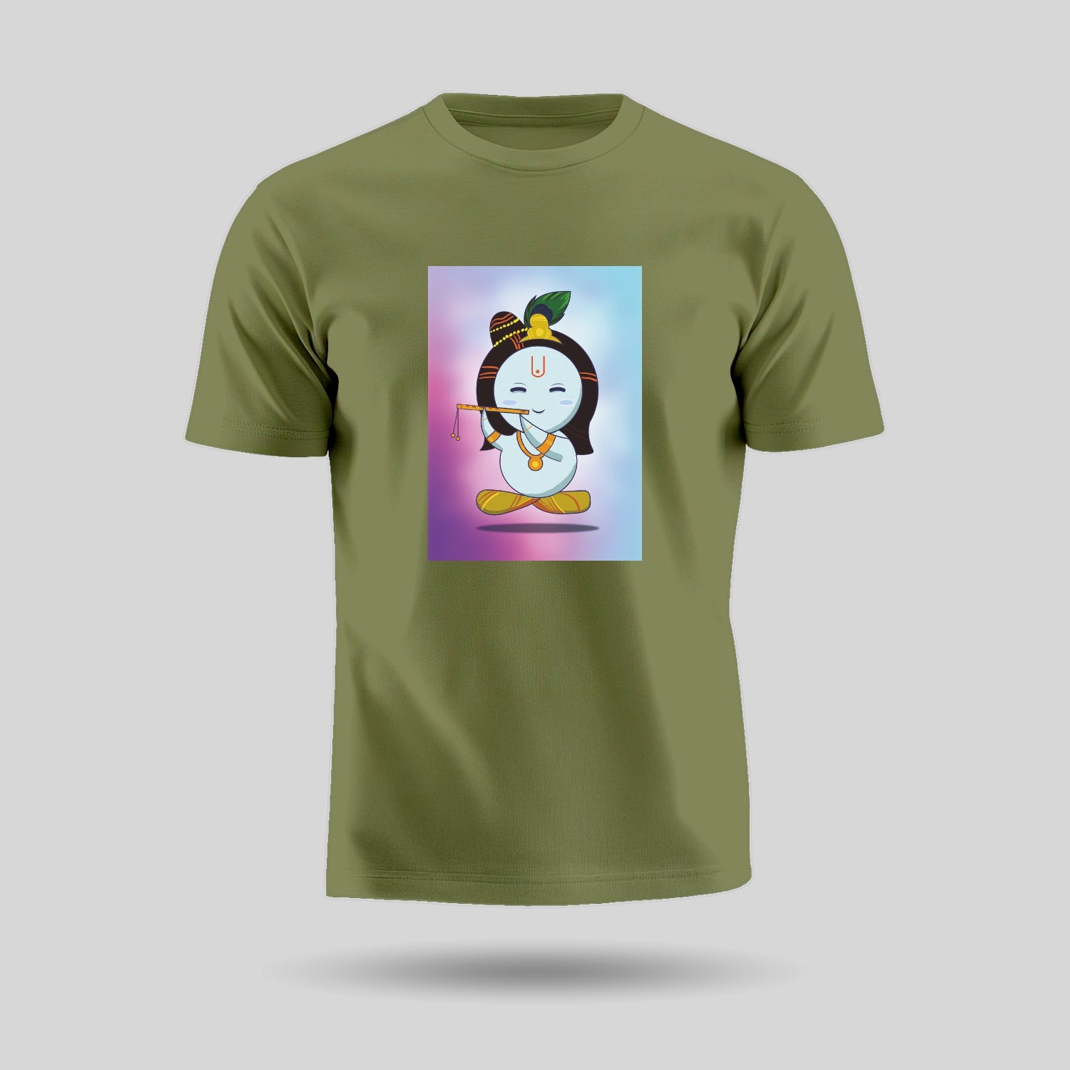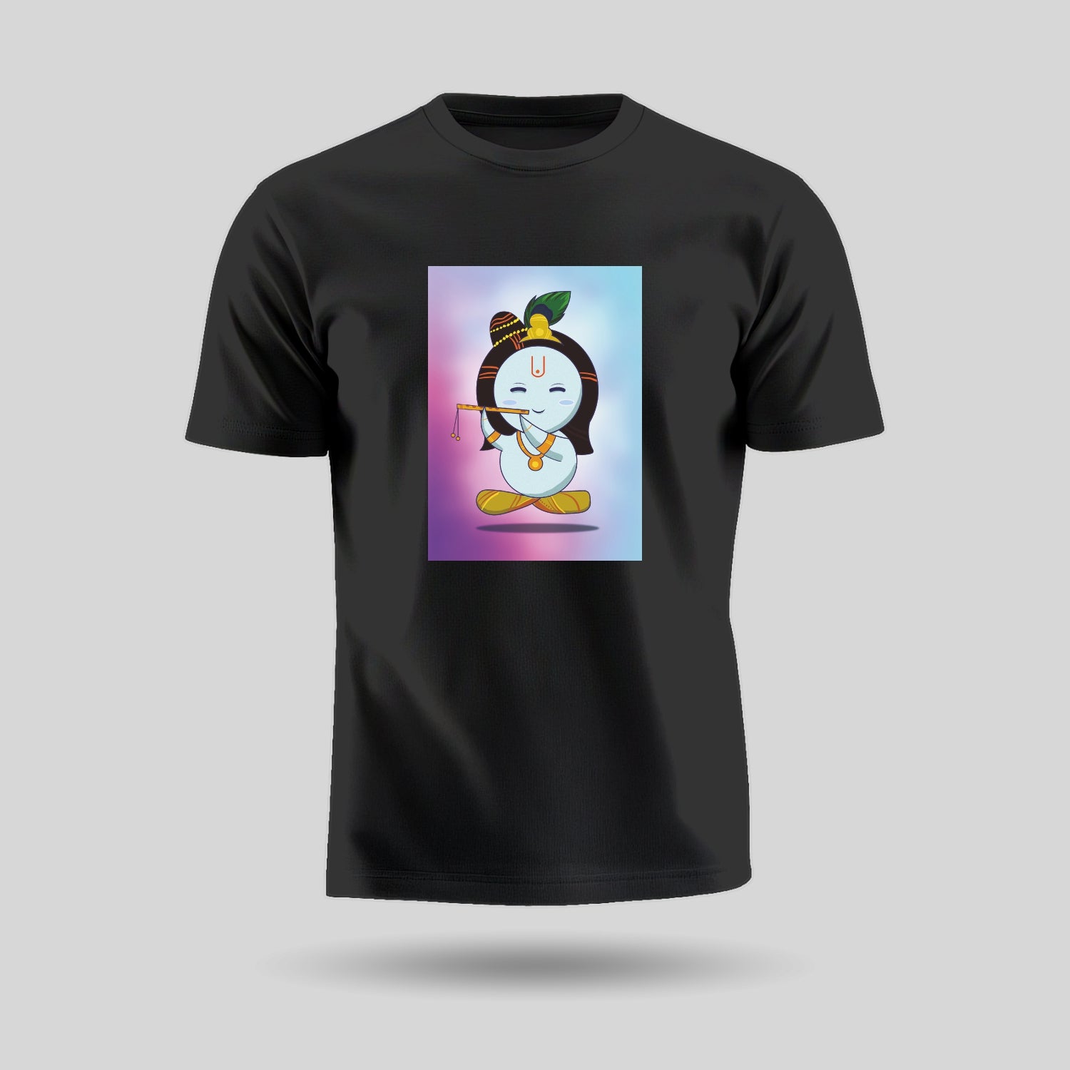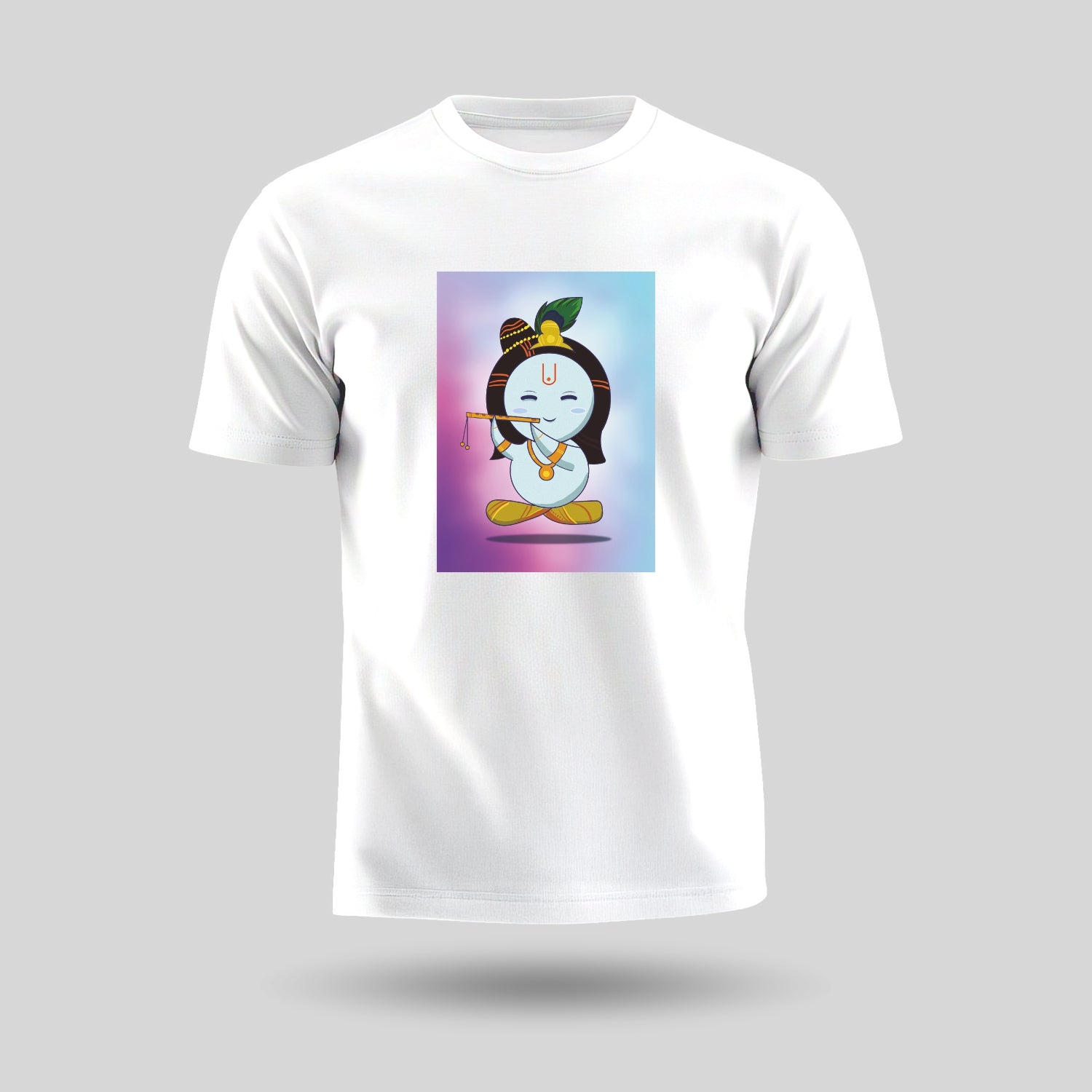 Let the wisdom and soulful energy and grace of Shri Krishna guide you through every chaos with Luv My India’s Lord Krishna design round neck pure cotton unisex spiritual T-Shirt.