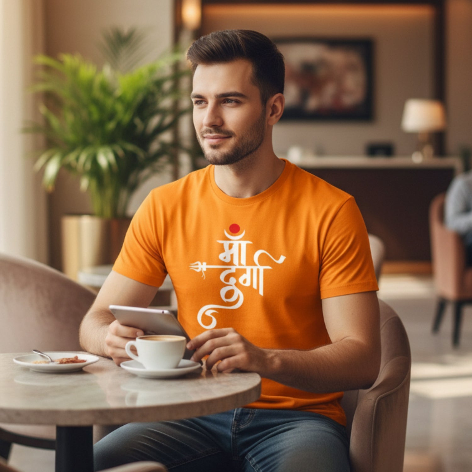 Embrace the fierceness and divinity of Maa Durga with Luv My India's pure cotton round neck T-shirt, a perfect addition to your Navratri wardrobe.