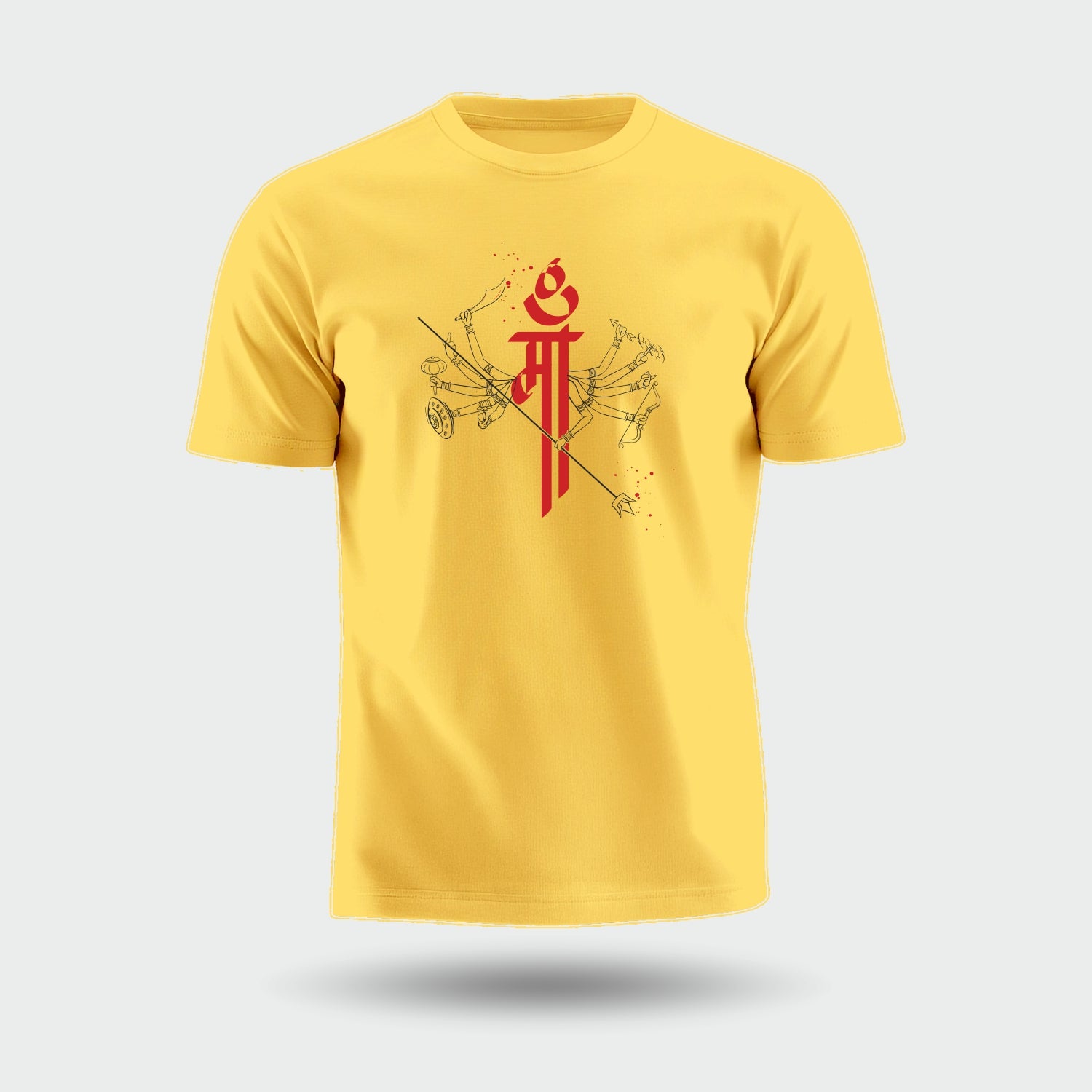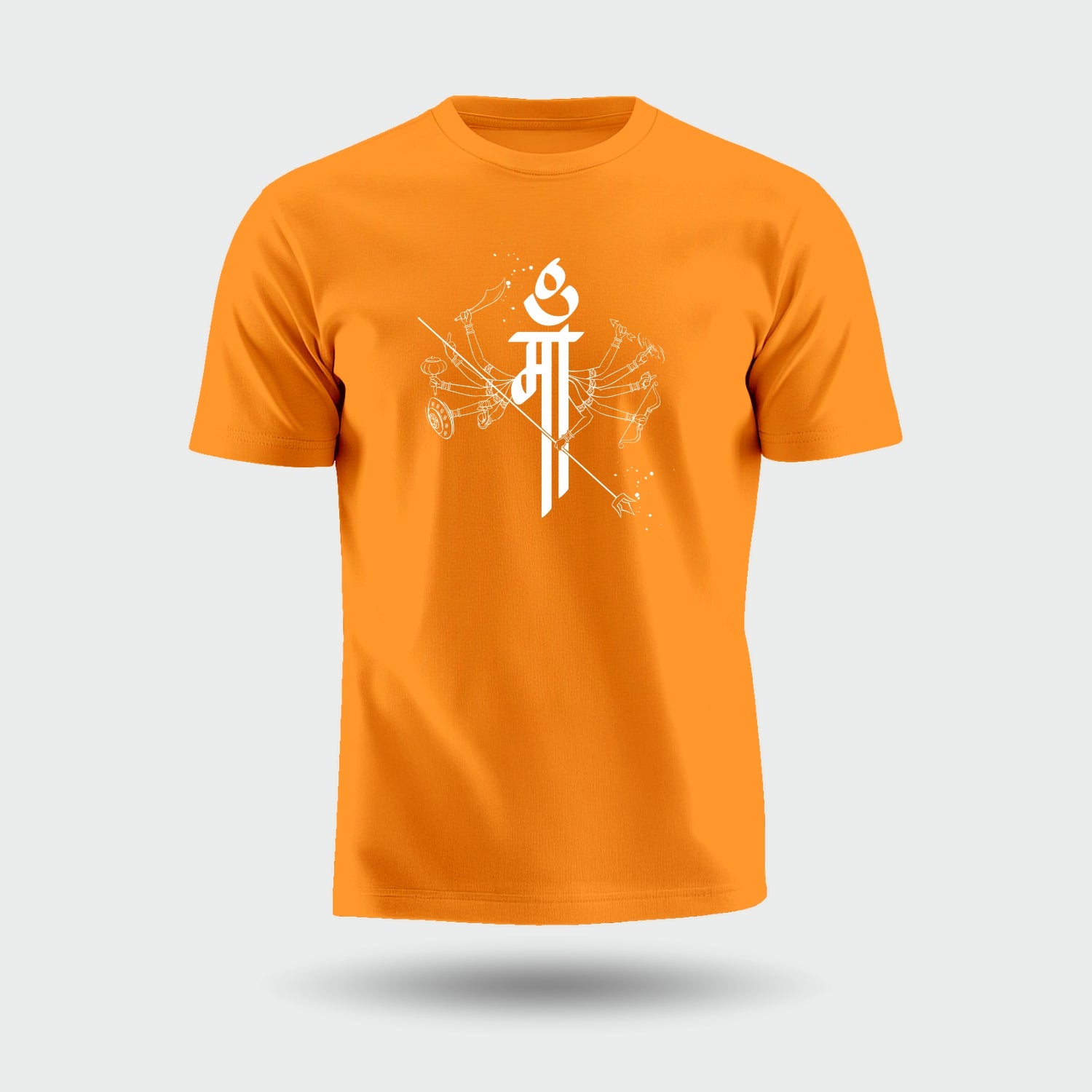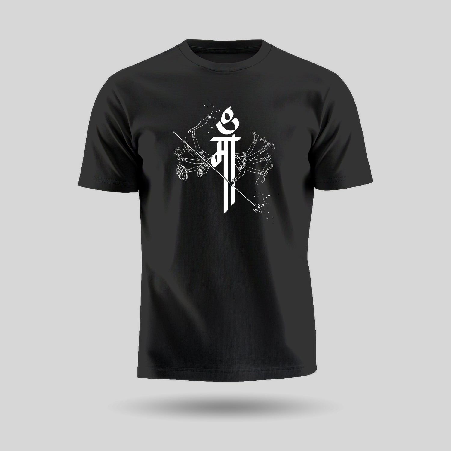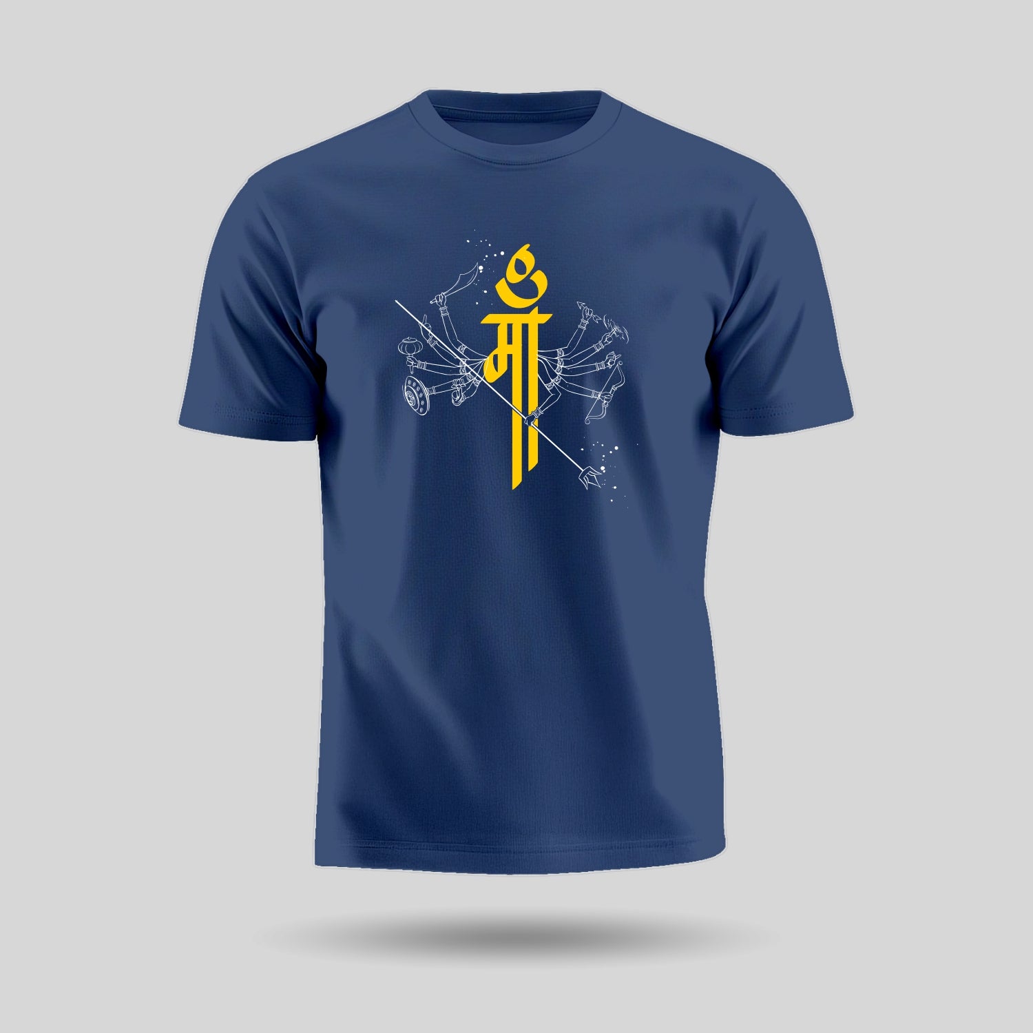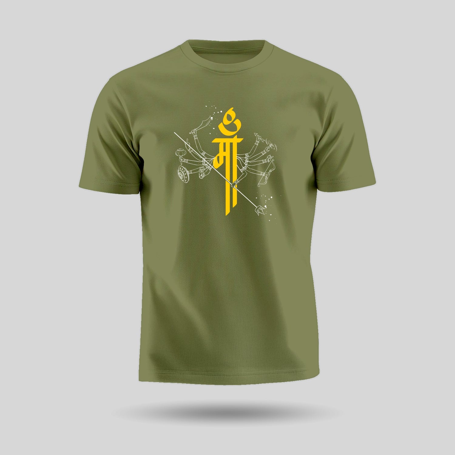 Maa Design | Round Neck Unisex T-Shirt | Pure Cotton Luv My India Fashion | Navratri Spiritual T-Shirt