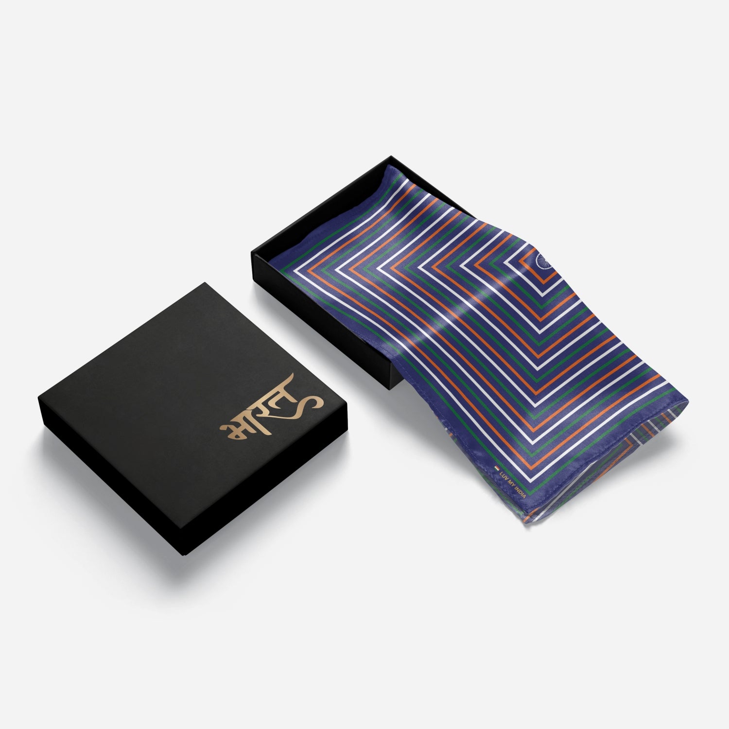 Step into timeless elegance with Luv My India’s 33x33 cm digital print Bemberg Vegan Silk Pocket Square, featuring tricolour radiance that draw the eyes towards the Ashoka Chakra at the centre. The symmetry reflects balance, unity and India’s progressive spirit, while the Tricolour hues echo the values of courage, peace and growth. A modern ode to patriotism, it is perfect for festive wear, national celebrations or elevating a sophisticated ensemble with meaning and pride.