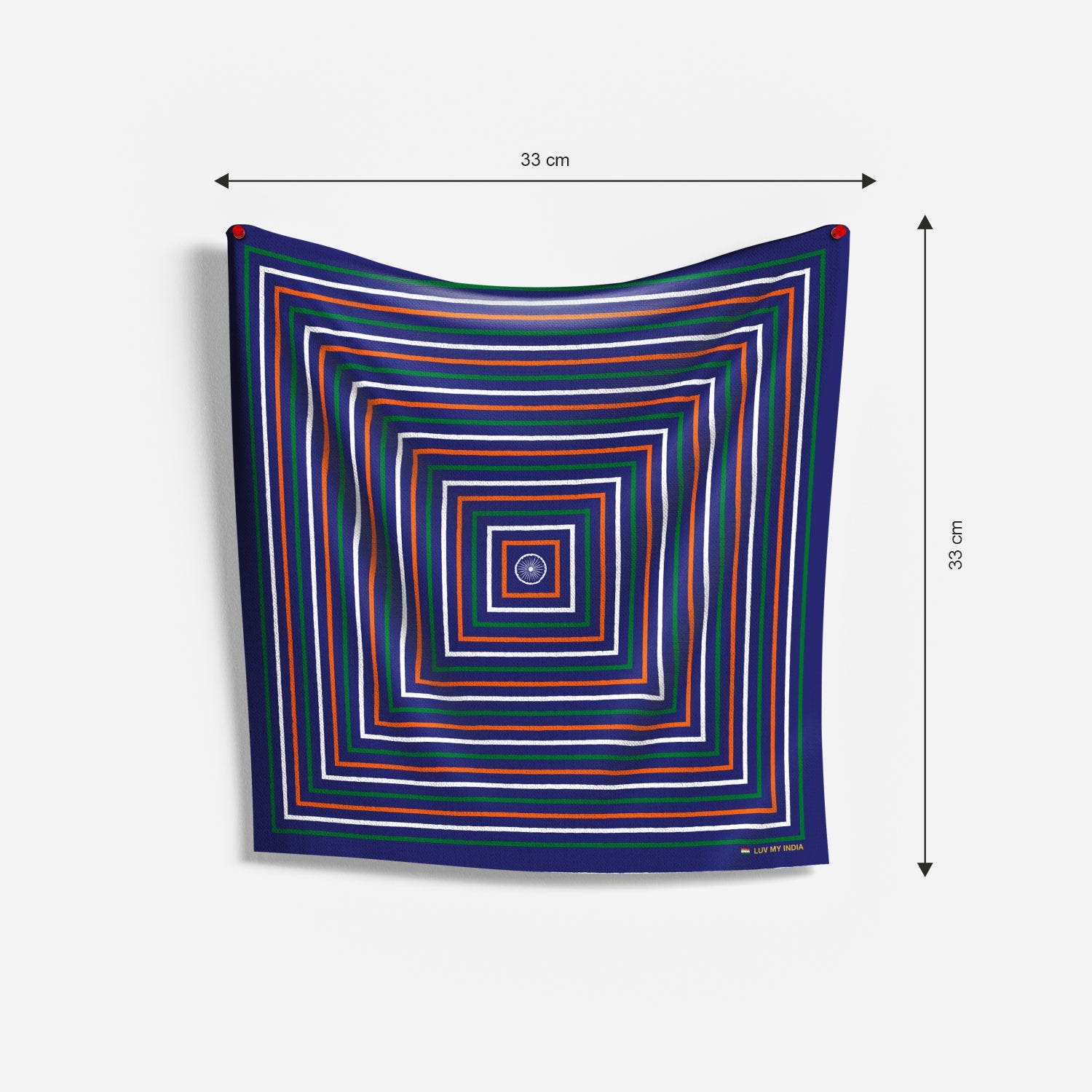 Tricolour Radiance | Luv My India Blue Patriotic Premium Bemberg Vegan Silk Pocket Square | Tiranga Inspired Digital Print 33x33 CM Pocket Square