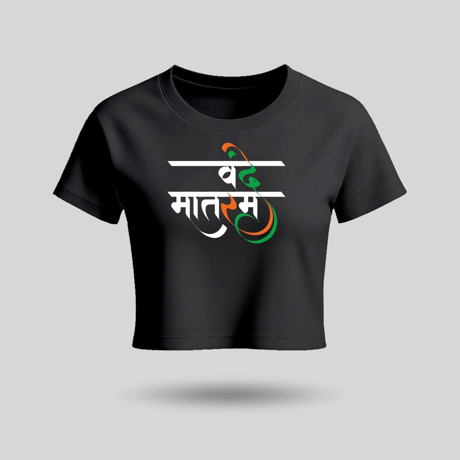 Luv My India’s Tiranga Vande Mataram design round neck pure cotton women’s patriotic crop top T-Shirt proudly features the powerful words Vande Mataram — a timeless anthem of India’s unity and love for the motherland. More than just a slogan, it’s a call that has inspired generations.