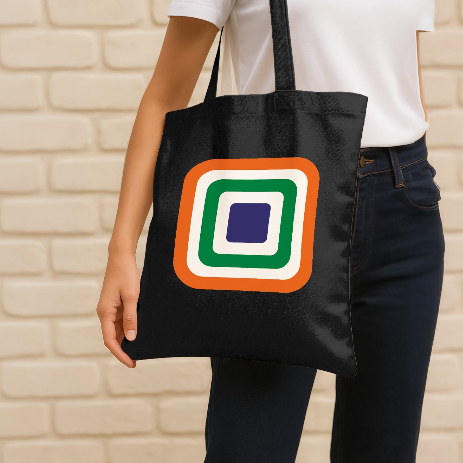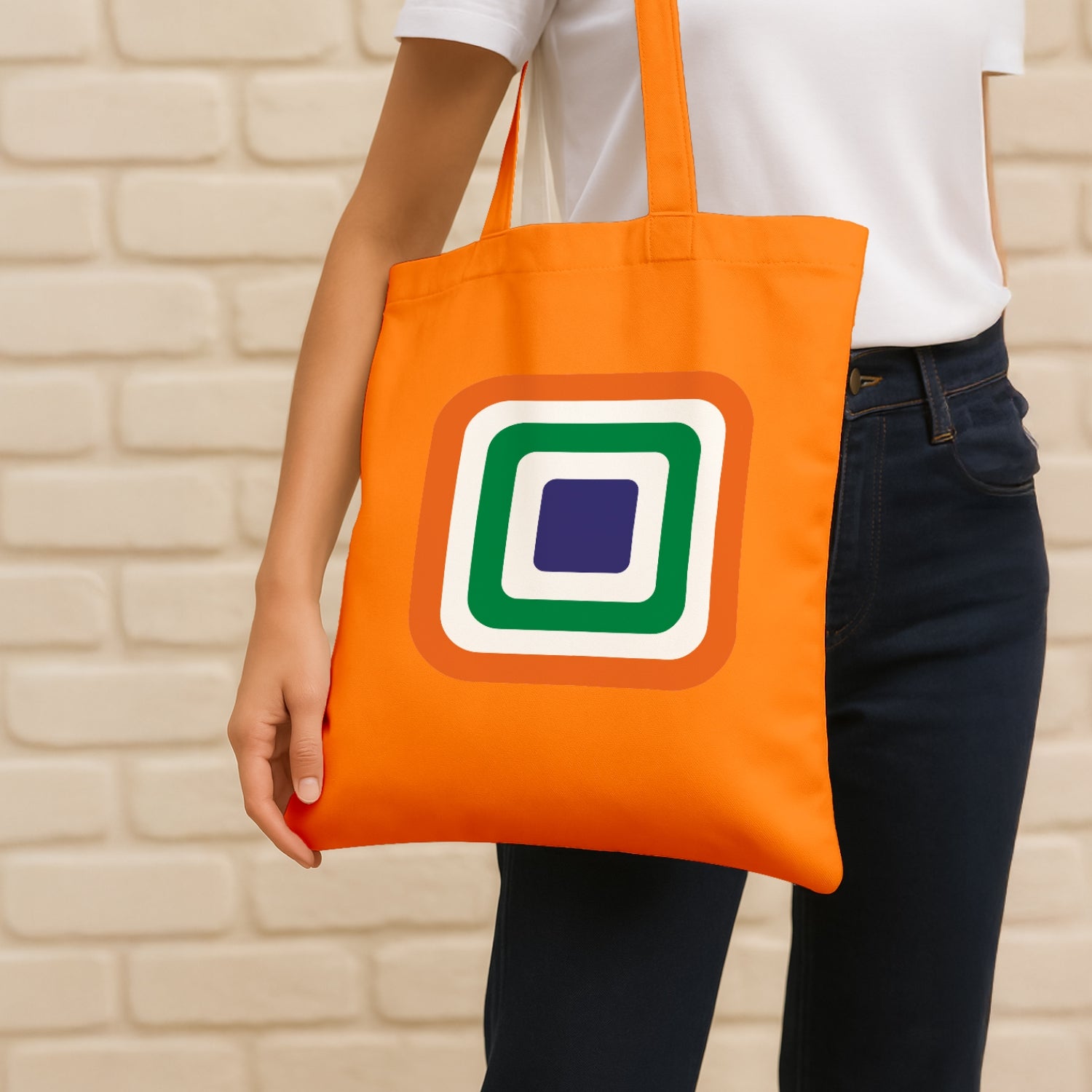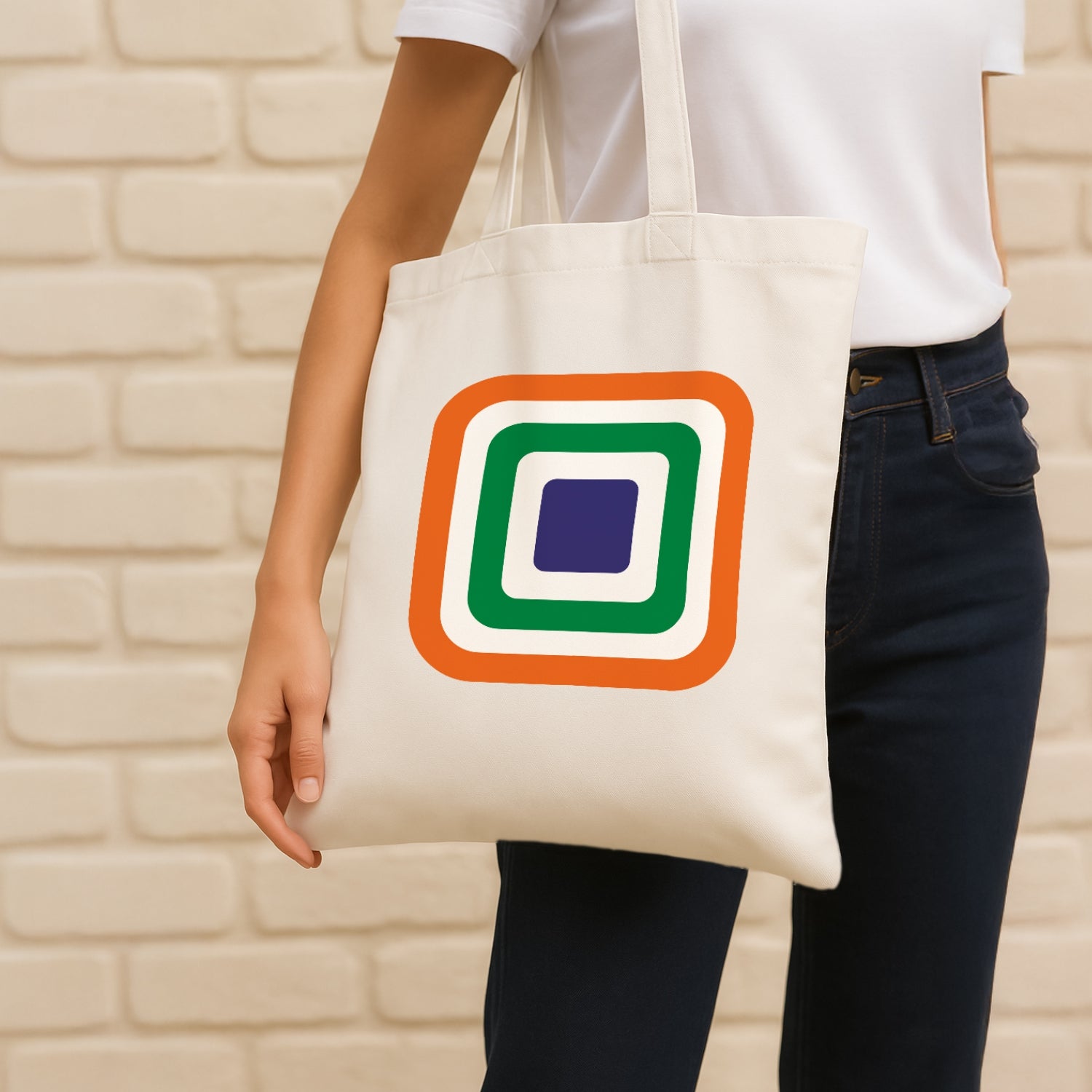 Luv My India's Tricolour Echo 14x13.5 inch cotton canvas Tote Bag blends modern design with timeless national pride. The layered tricolour squares reflect a simple truth that every Indian forms an essential layer of this nation’s identity as well as fabric. Crafted on a premium material, it’s a stylish way to carry your essentials and your values together.