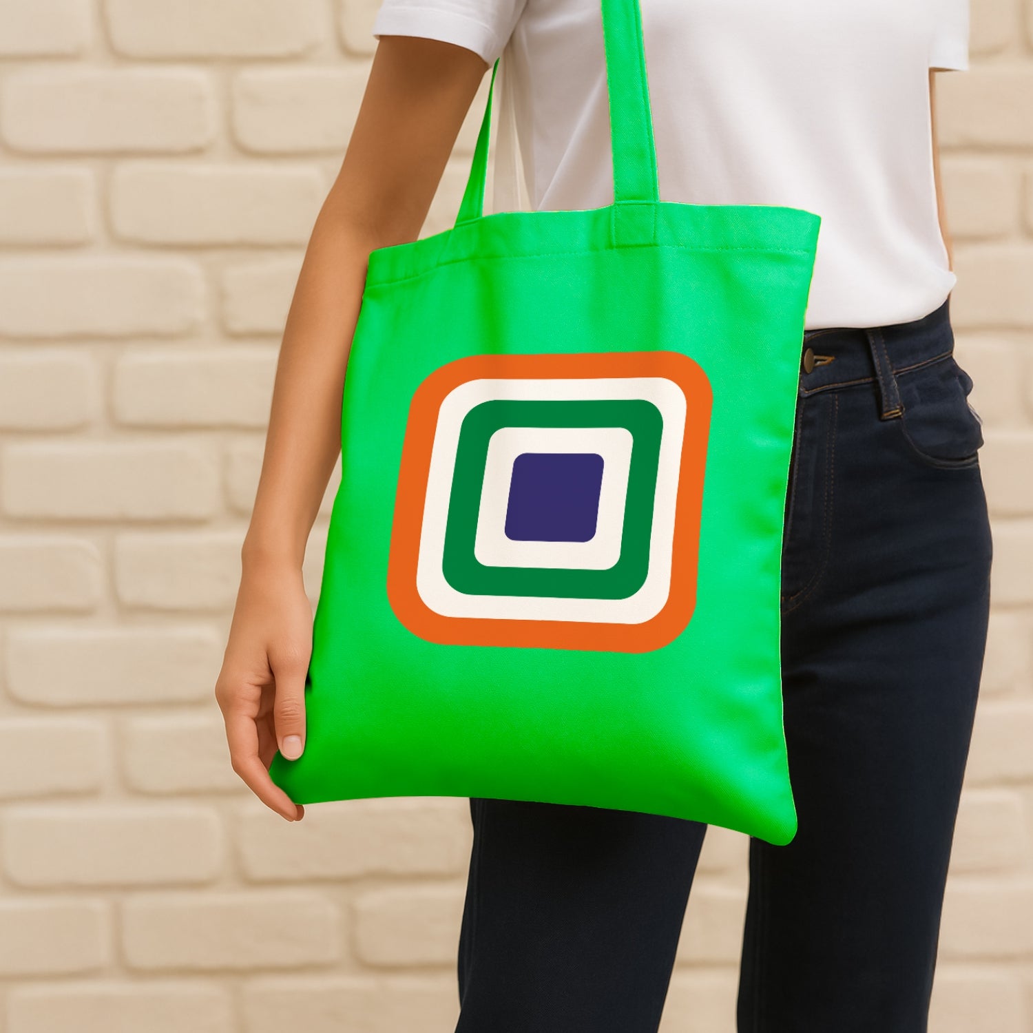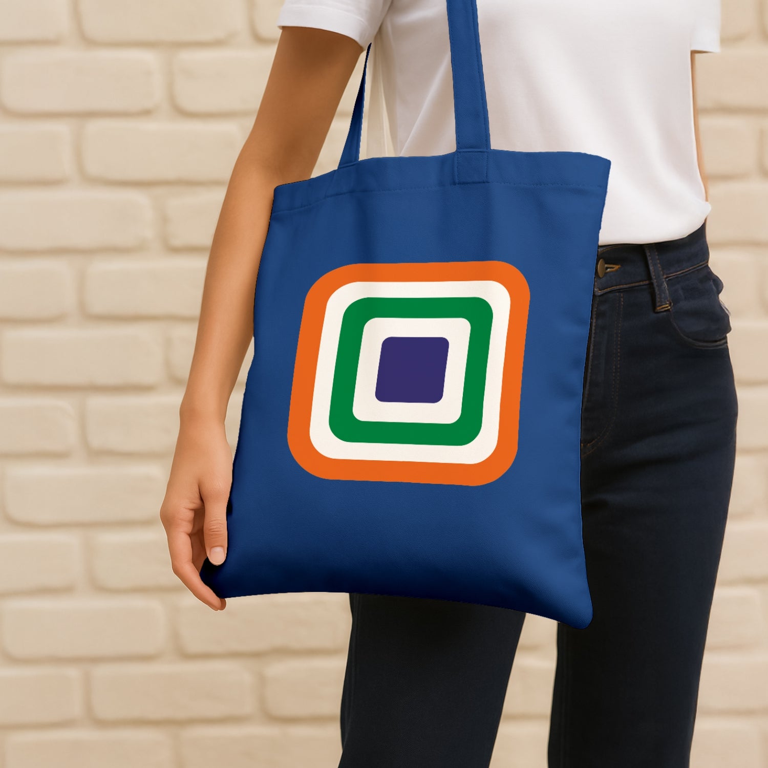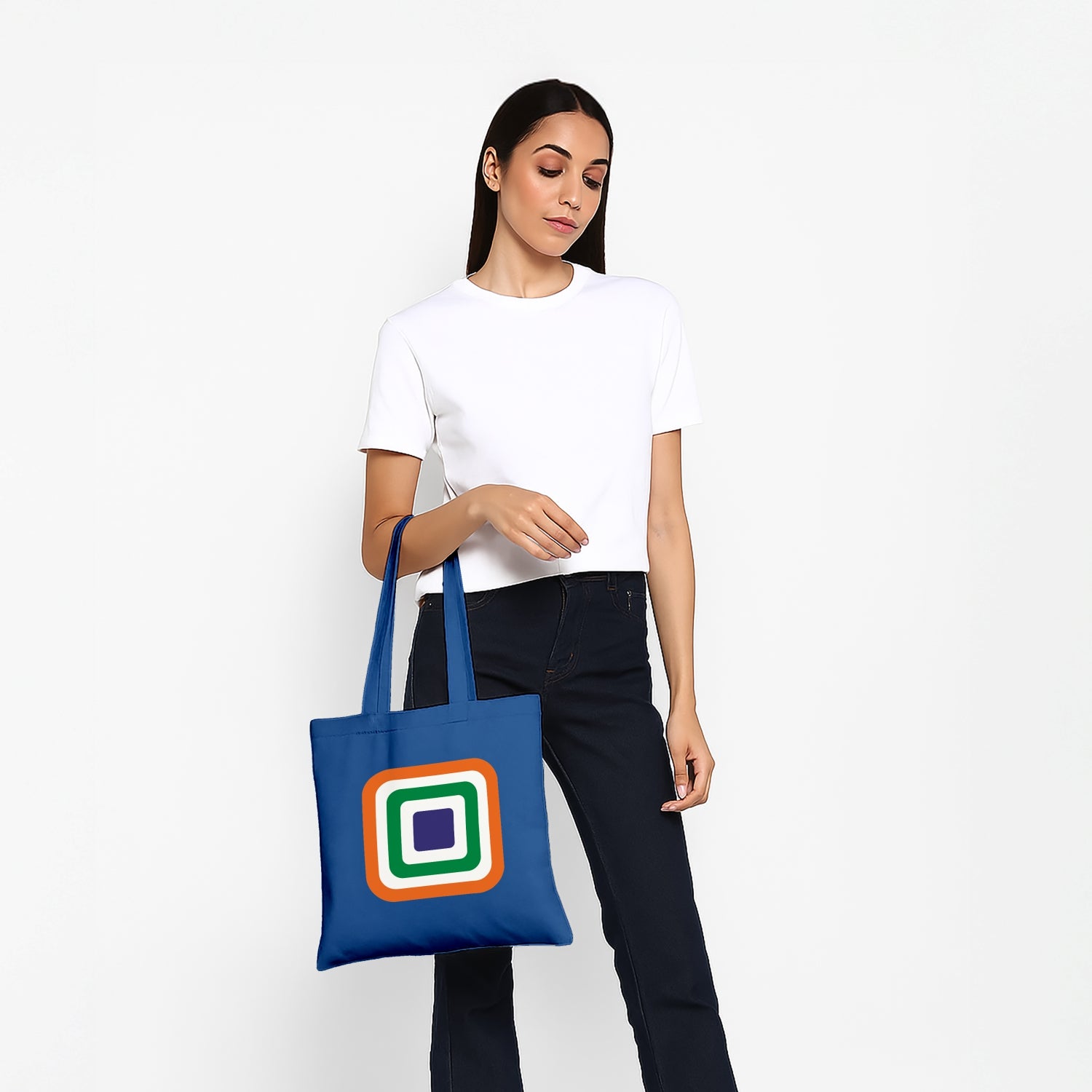 Luv My India's Tricolour Echo 14x13.5 inch cotton canvas Tote Bag blends modern design with timeless national pride. The layered tricolour squares reflect a simple truth that every Indian forms an essential layer of this nation’s identity as well as fabric. Crafted on a premium material, it’s a stylish way to carry your essentials and your values together.