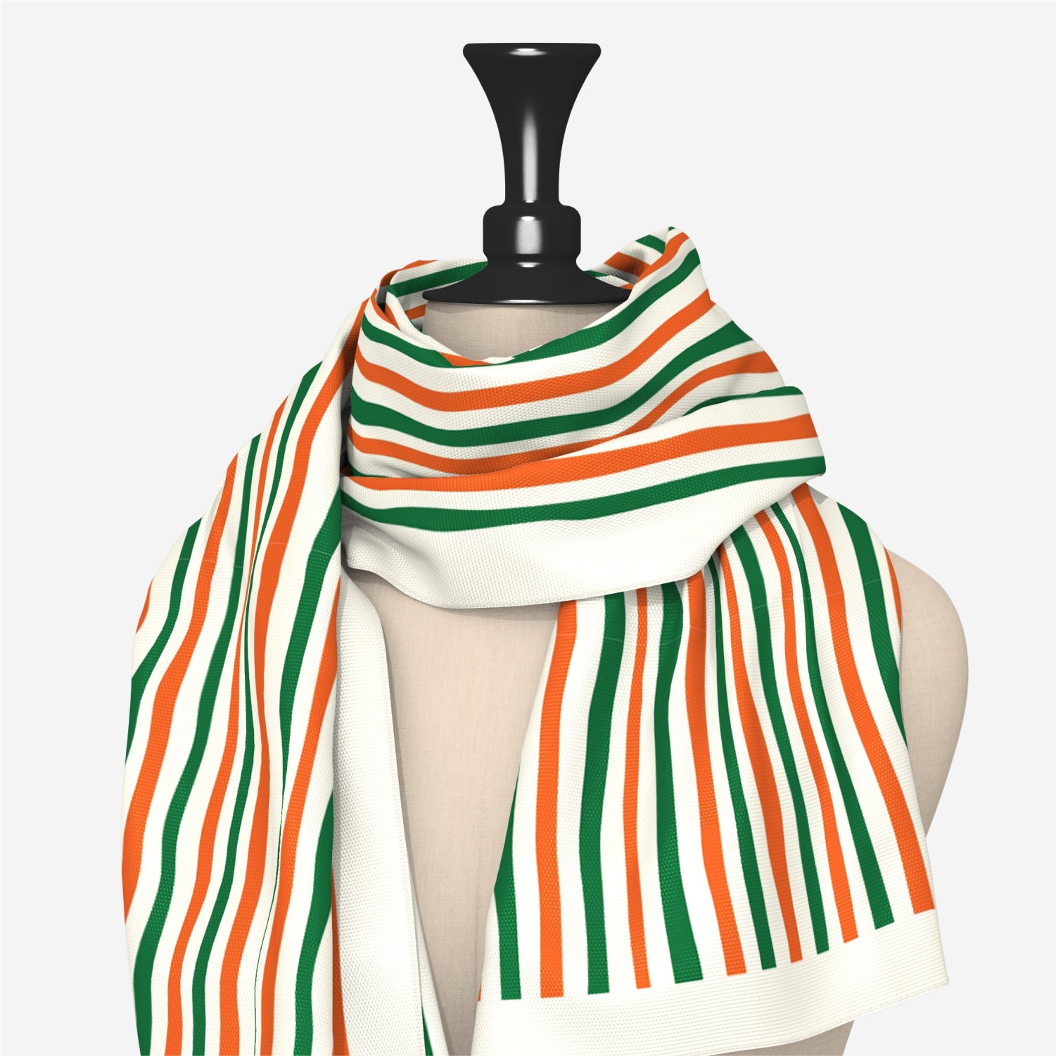 Luv My India's Vertical Tricolour Stripes Bemberg Vegan Silk Scarf embodies elegance through simplicity. Designed with the three shades of the Indian flag—saffron, white and green—it flows seamlessly in soft, parallel bands that create a refined, contemporary look. The colours blend beautifully, making it easy to pair with both casual and festive outfits.