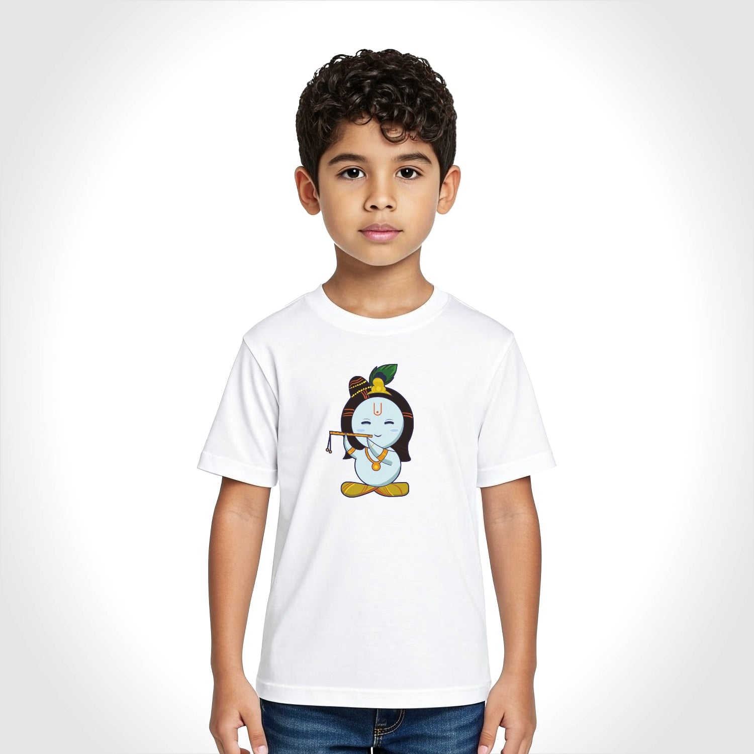 Lord Krishna | Round Neck Kids’ Unisex T-Shirt | Pure Cotton Luv My India Fashion | Shri Krishna Spiritual T-Shirt