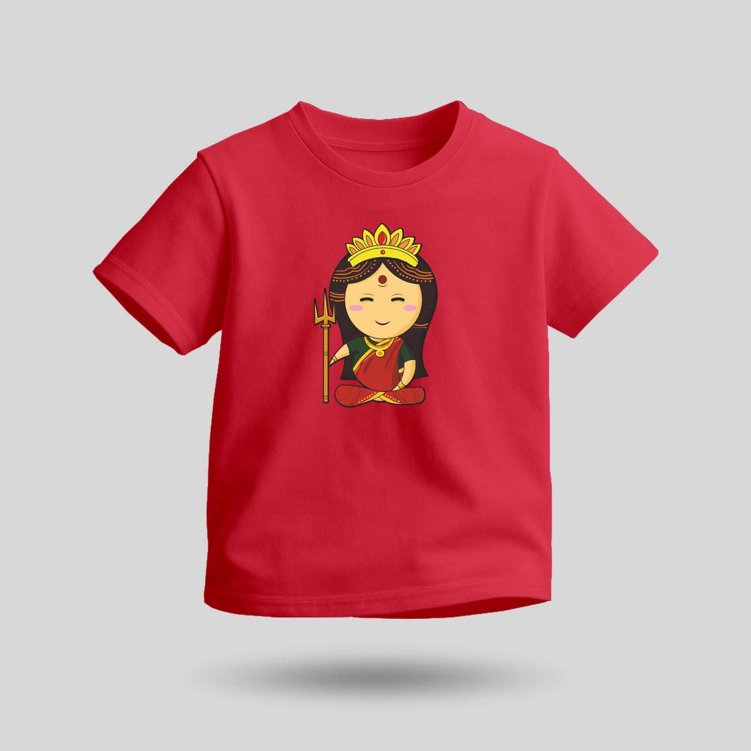 Luv My India’s Maa Durga design round neck pure cotton spiritual T-Shirt for kids is a celebration of the warrior goddess who embodies shakti, compassion and unstoppable energy.