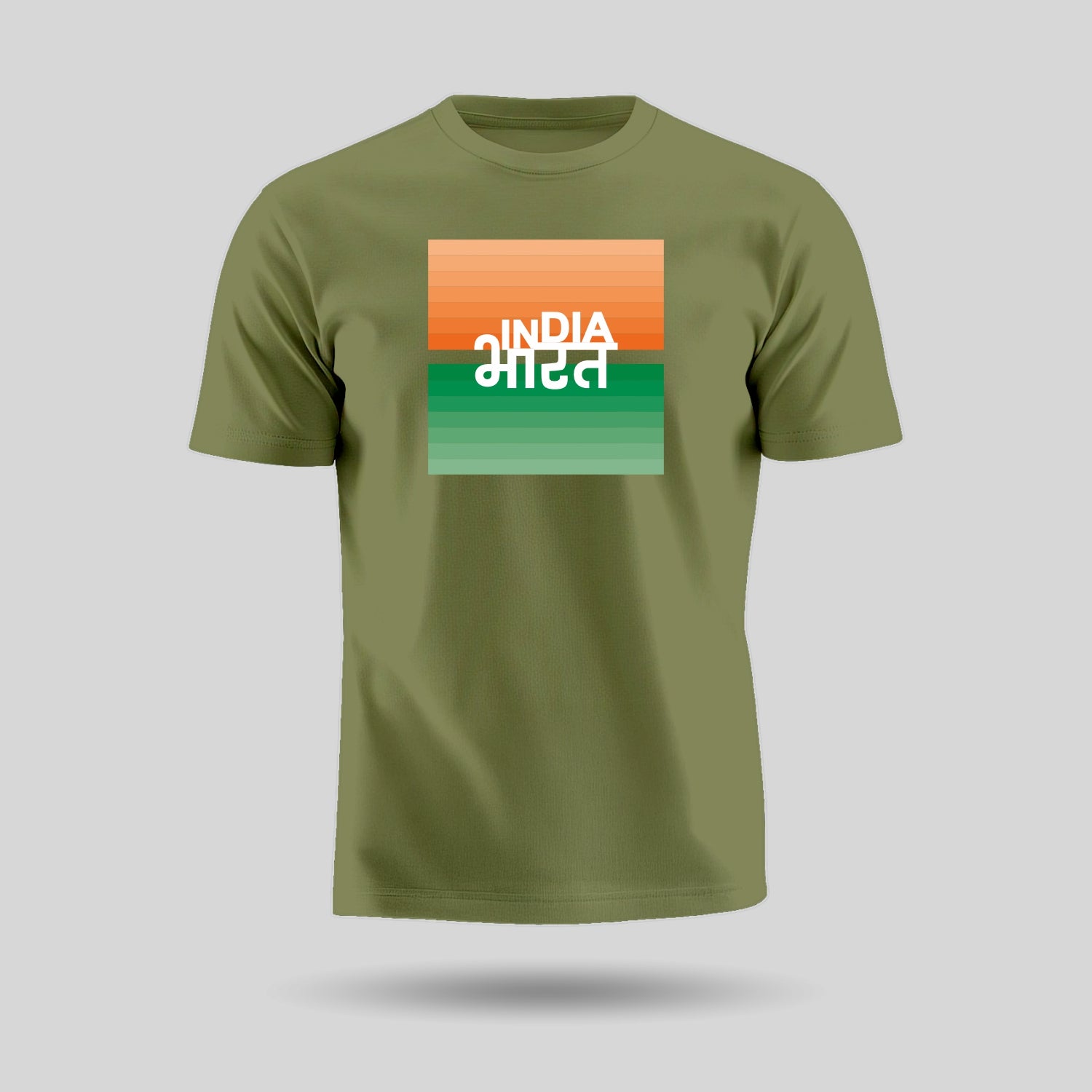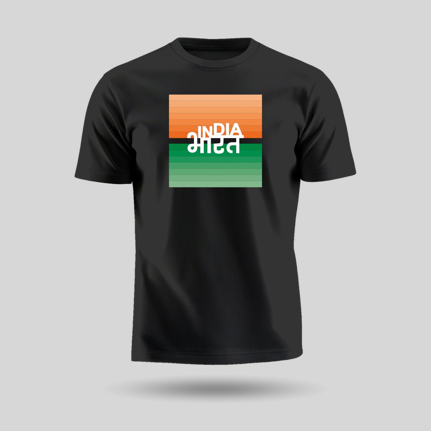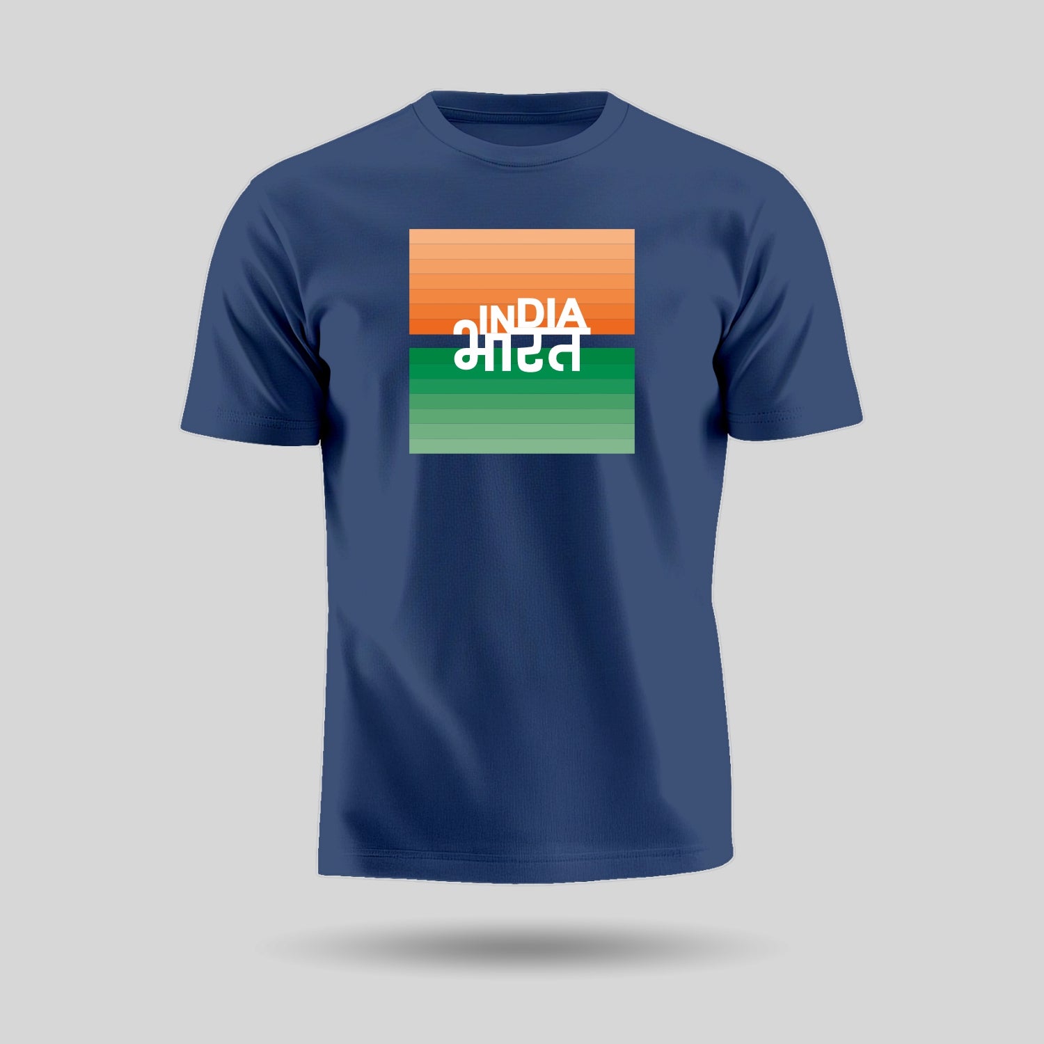 Celebrate the glory of our nation with Luv My India's Tiranga themed India-Bharat design pure cotton round neck unisex T-Shirt which reflects the strength, unity and timeless pride of being an Indian.