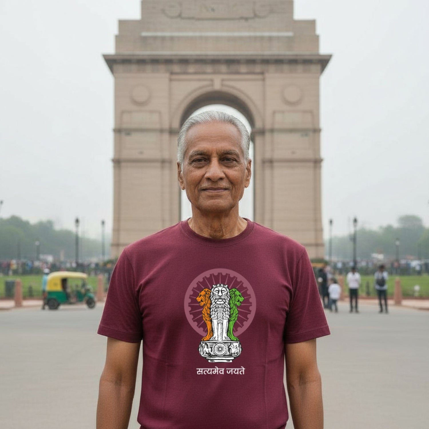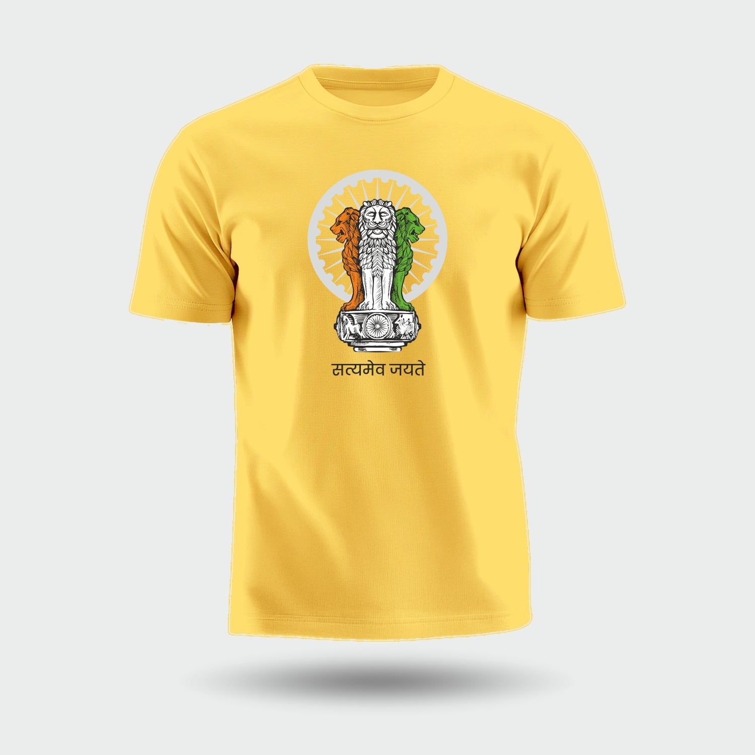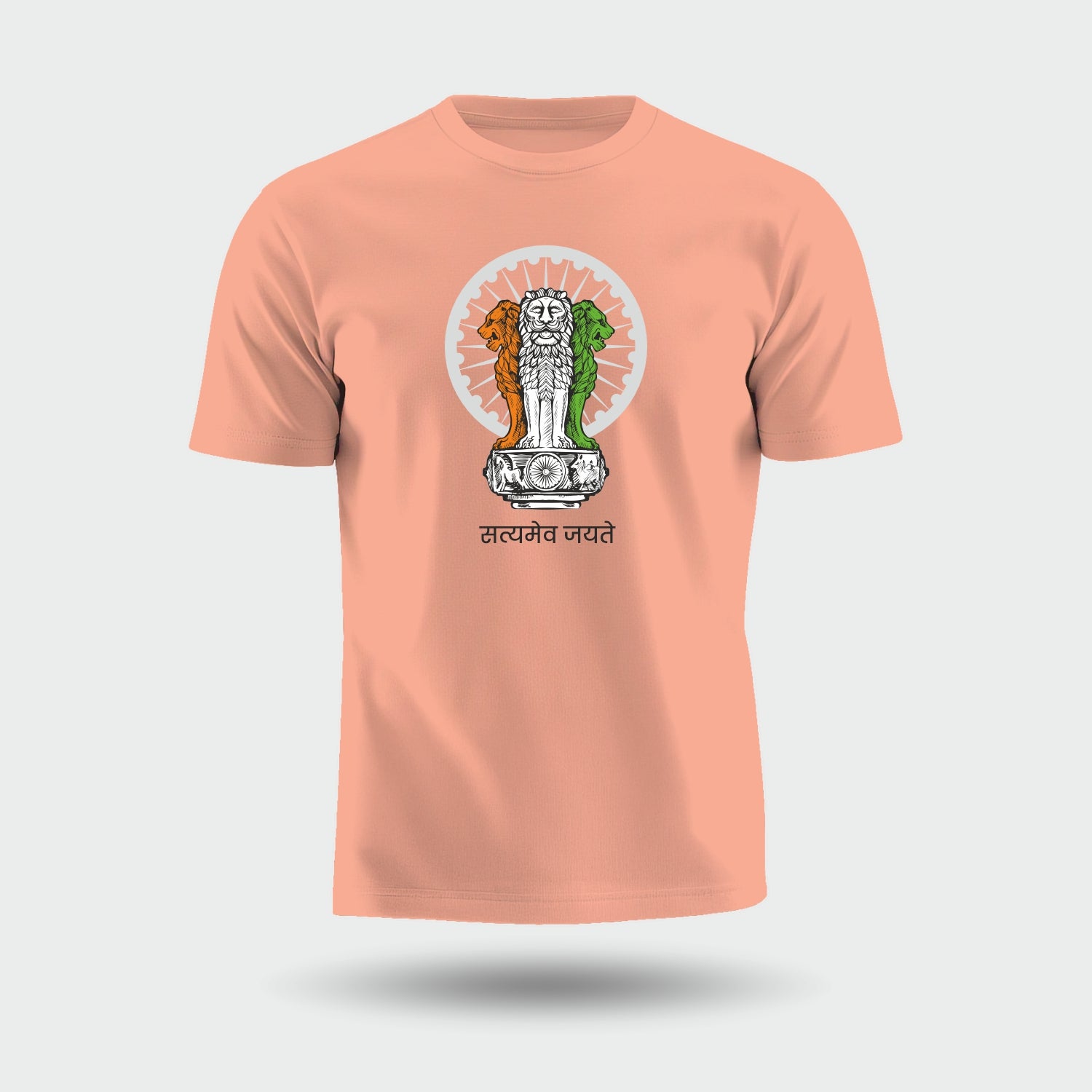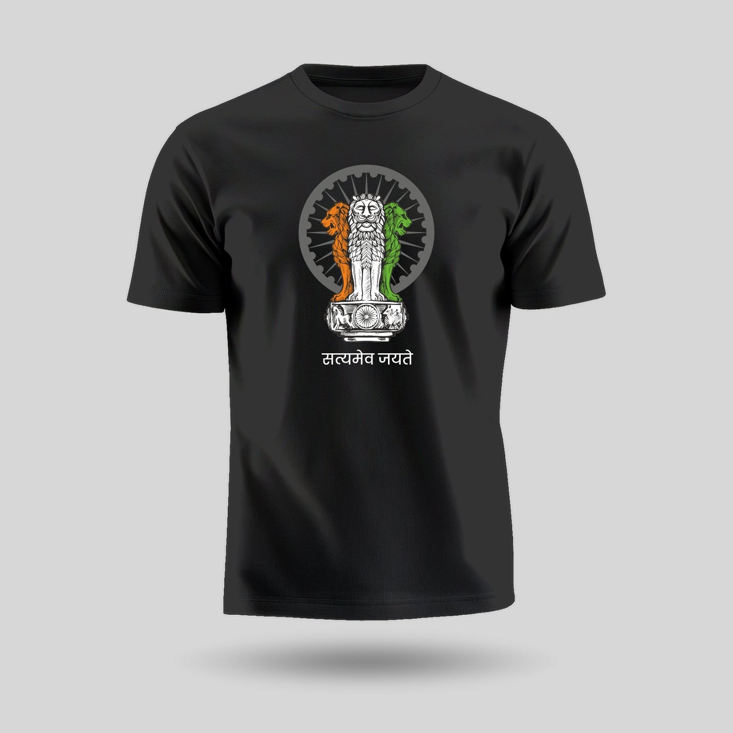 Wear your values loud and proud with Luv My India's Satyameva Jayate round neck pure cotton unisex T-Shirt — a bold tribute to India’s timeless national motto of "Truth Alone Triumphs."