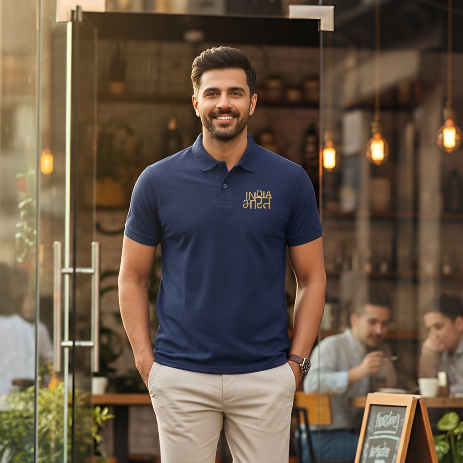 From the land of the Vedas to the wonders of modern technology, our India Bharat PCPQ polo neck pure cotton unisex T-Shirt with metallic / zari thread Golden Embroidery honours our nation’s incredible journey and contribution to the world. Wear it proudly because India, that is Bharat, is truly the heart of the world.