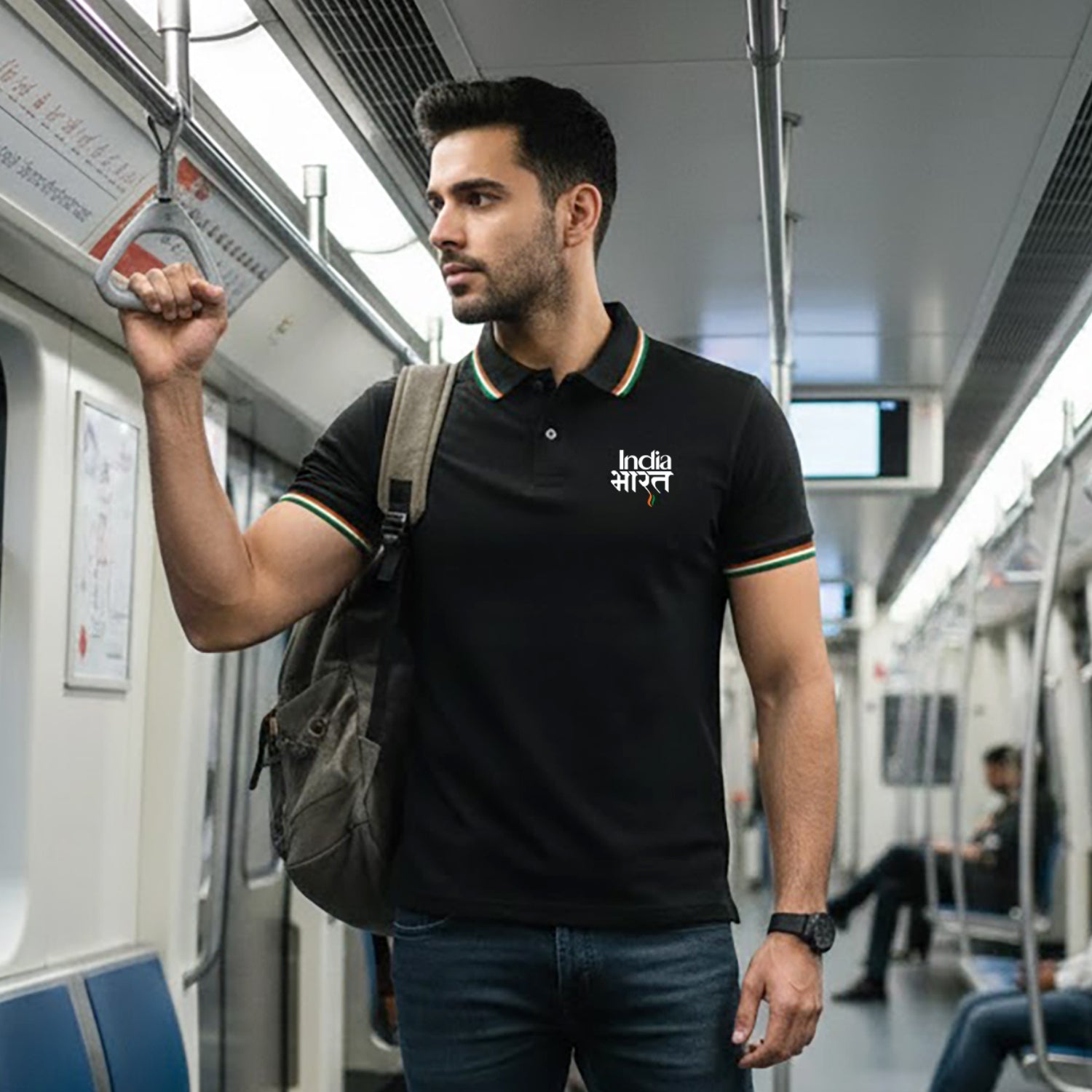 From the land of the Vedas to the wonders of modern technology, our India Bharat with Tiranga Stripe PCPQ polo neck pure cotton unisex T-Shirt honours our nation’s incredible journey and contribution to the world. Wear it proudly because India, that is Bharat, is truly the heart of the world.