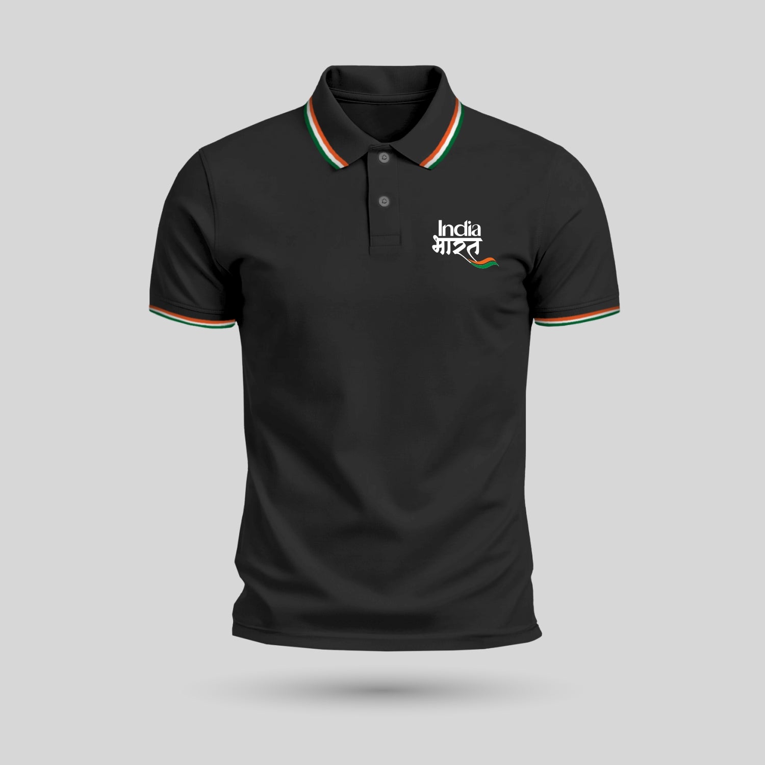 India Bharat Tiranga Flag | Tricolour PCPQ Polo Neck Unisex T-Shirt | Pure Cotton Luv My India Fashion | Tricolour Stripe Patriotic T-Shirt