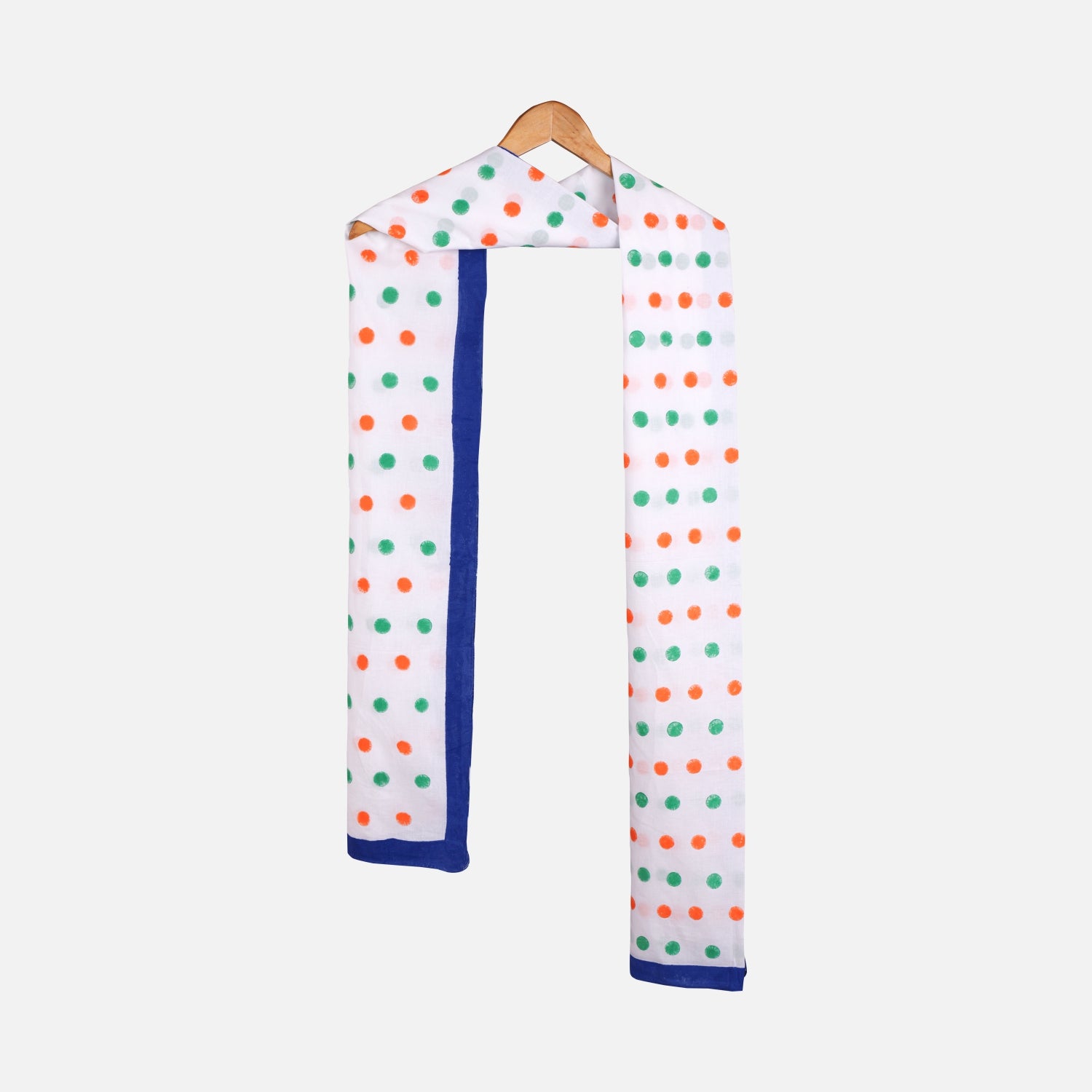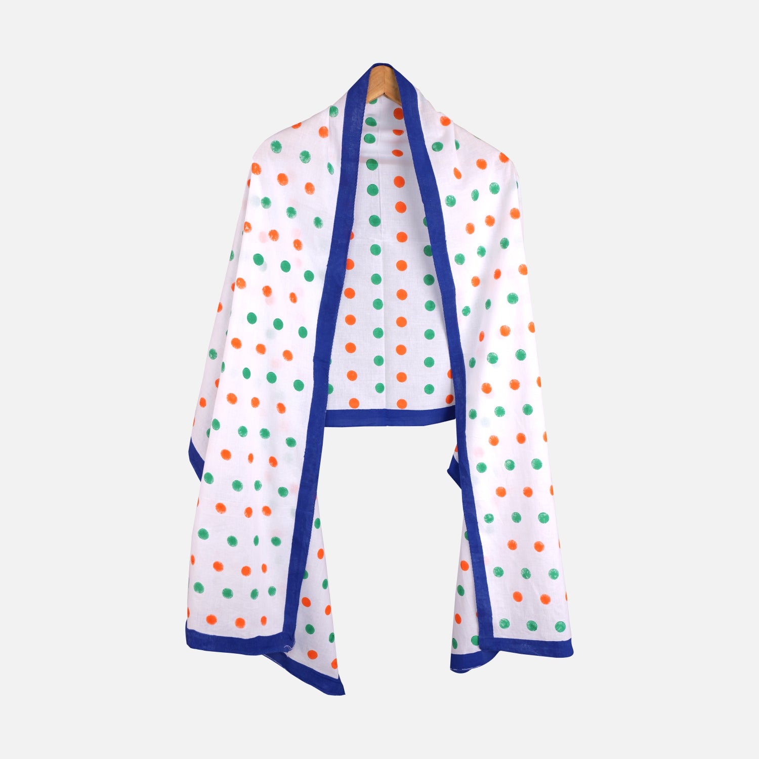 Tricolour Polka Dots | Mulmul Cotton Dupatta | Luv My India Fashion | 220x70 CM | Elegant Hand-Block Patriotic Dupatta