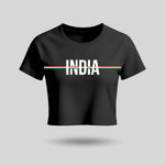 India | Round Neck Women’s Crop Top T-Shirt | Pure Cotton Luv My India Fashion | Tiranga / Tricolour Patriotic T-Shirt