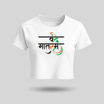 Vande Mataram | Round Neck Women’s Crop Top T-Shirt | Pure Cotton Luv My India Fashion | Tiranga / Tricolour Patriotic T-Shirt