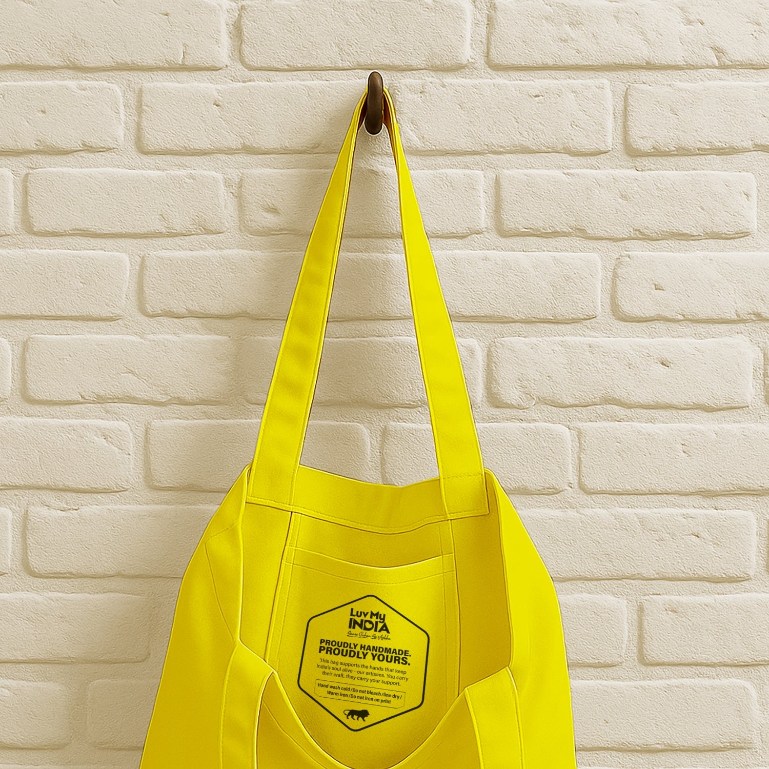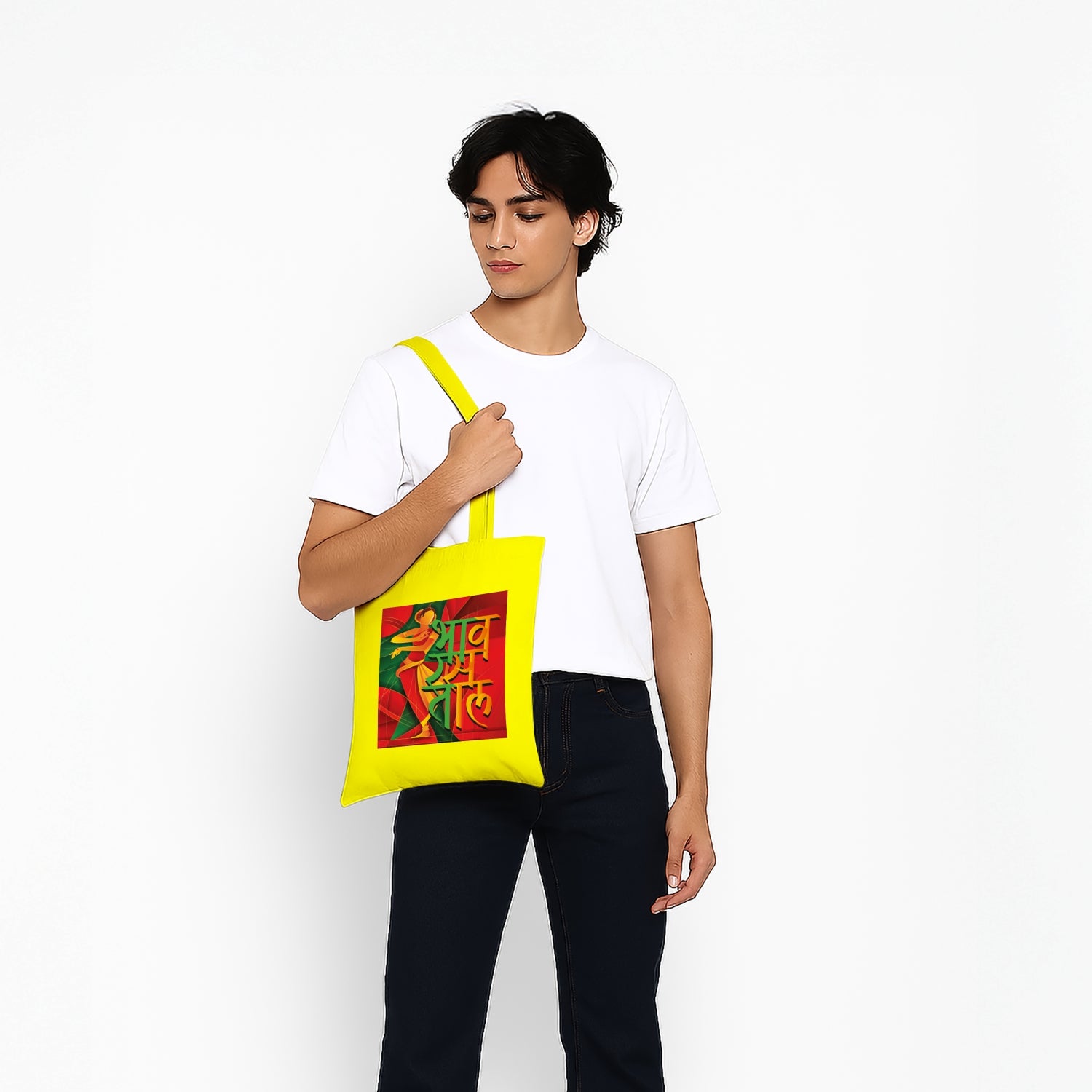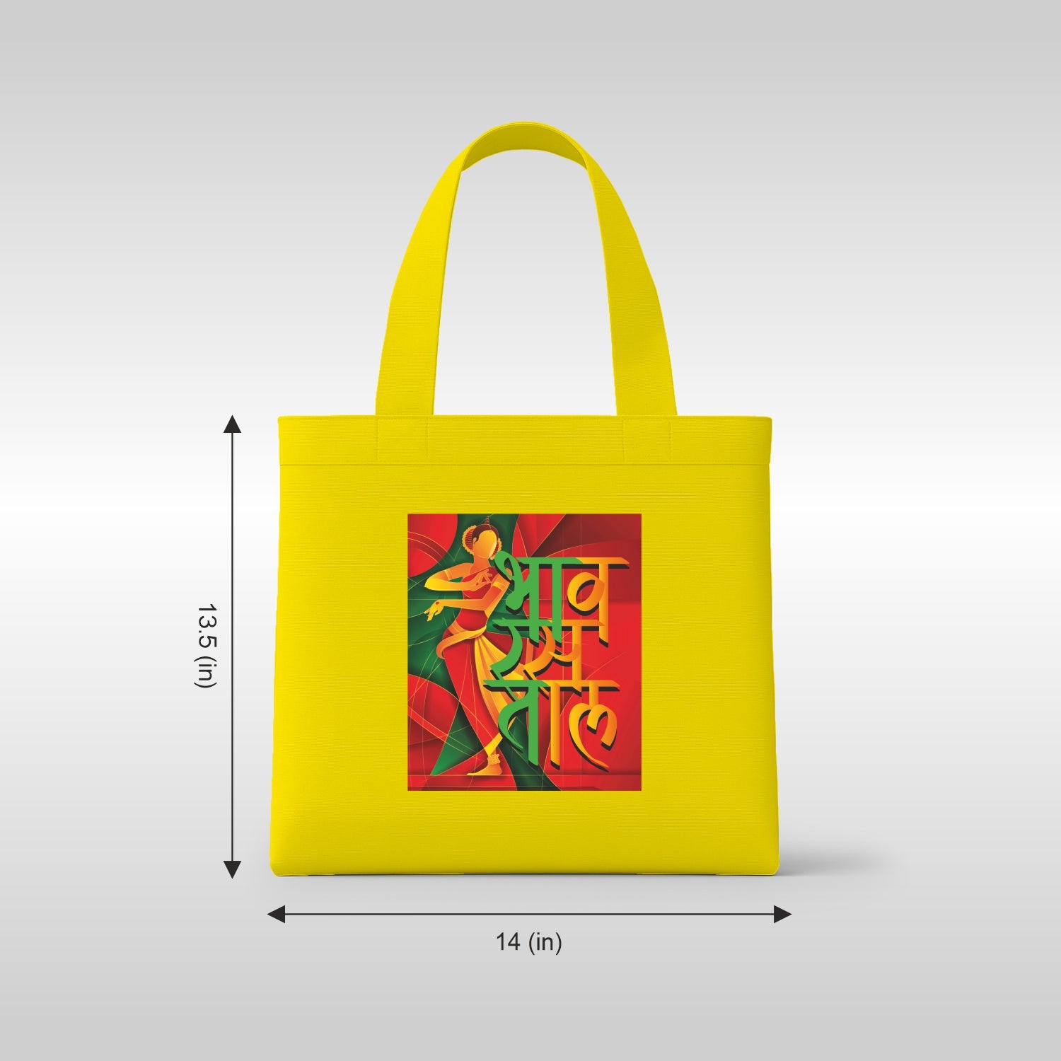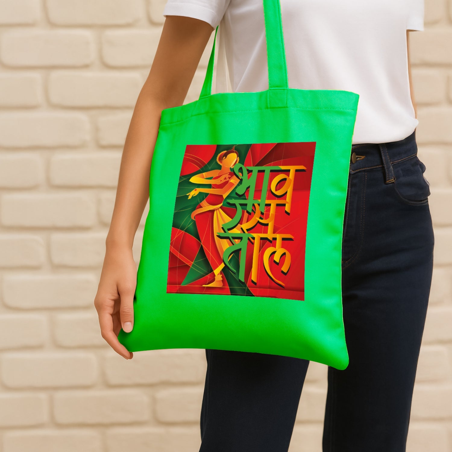 Celebrate the soul of Bharat with Luv My India’s भाव–रस–ताल 14x13.5 inch cotton canvas Tote Bag that form the word Bharat. Inspired by the timeless triad of expression, emotion and rhythm, this design brings Indian aesthetics into everyday fashion. The clean Hindi typography, set in soft dual tones, reflects the harmony that defines our cultural identity.