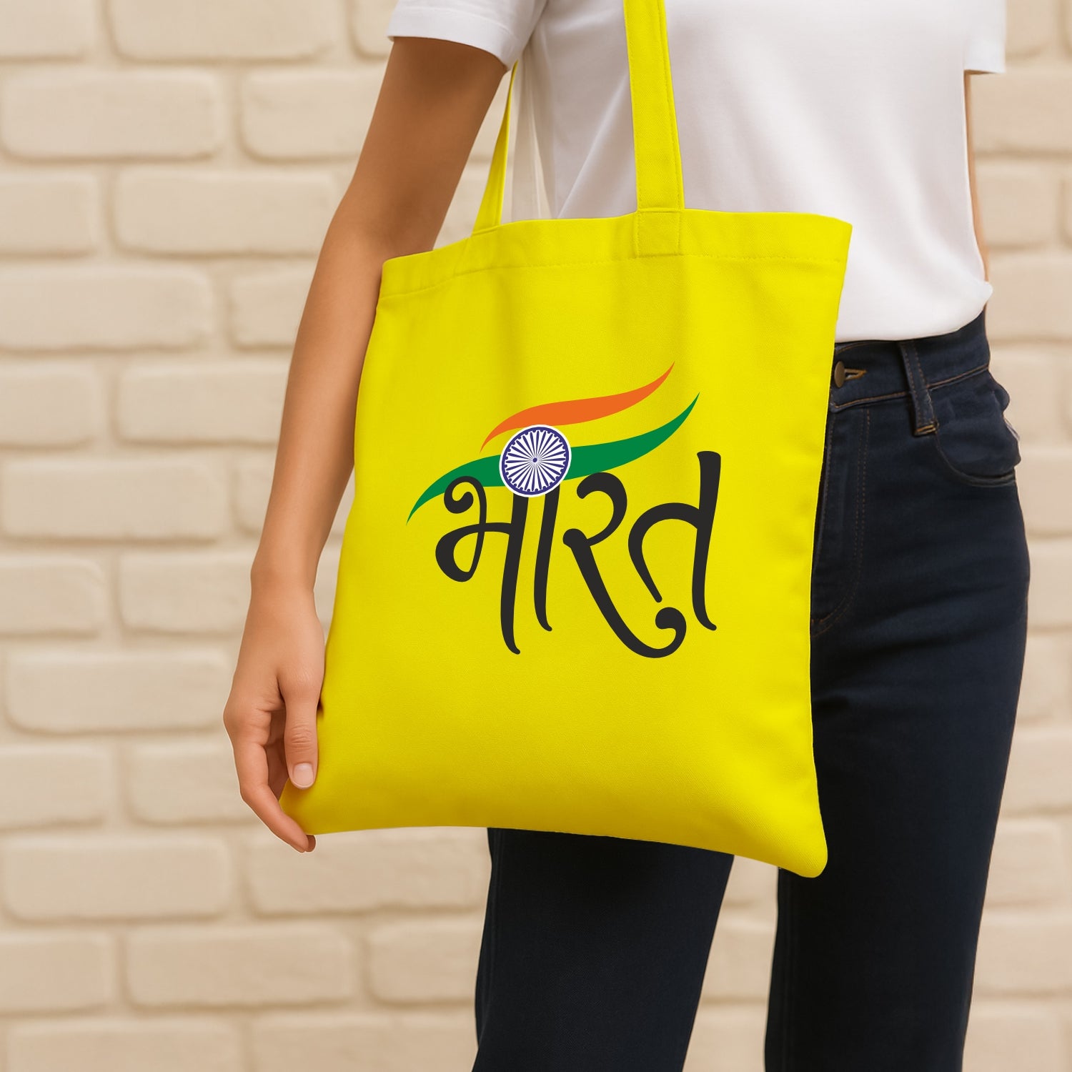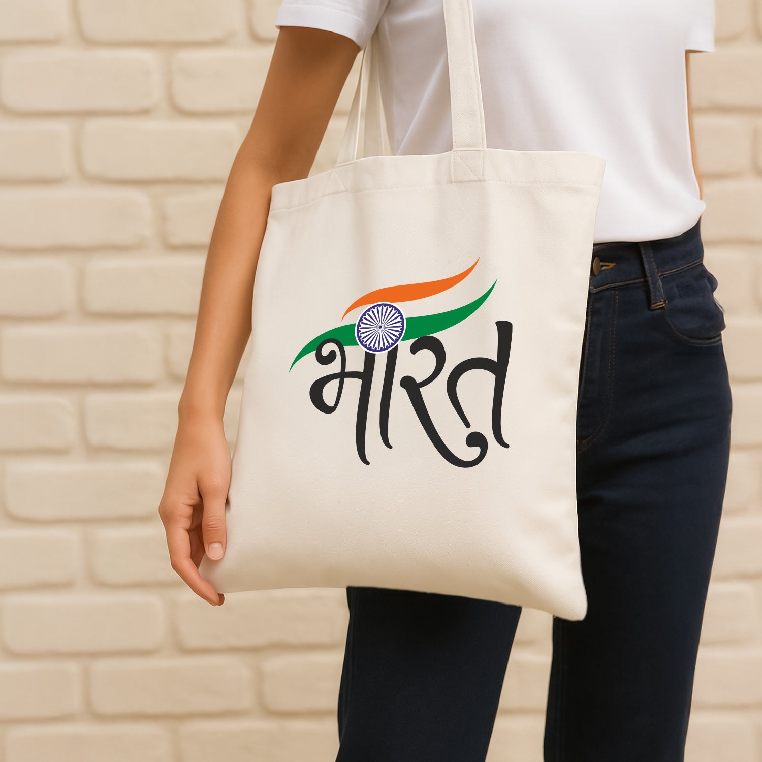 Every thread of Luv My India’s Bharat themed cotton canvas 14x13.5 inches spacious carry-all Tote Bag with an inside pocket weaves the story of freedom, unity and Tiranga. Made from premium, fade-resistant fabric, it offers exceptional durability and strength to withstand daily wear and tear.