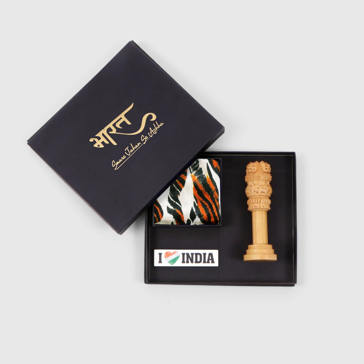 Curated with love, pride and purpose, Luv My India’s Patriotic Hamper brings together our handpicked treasures that honour the timeless spirit of Bharat. From an Ashoka Chakra Pocket Square to keepsakes like Ashoka Stambh and Fridge Magnet — each corporate & personal gifting product echoes India’s glory and rich heritage. Whether gifted on Independence Day, Republic Day or as a heartfelt gesture to someone who holds India close, this hamper speaks beyond utility. These aren’t just gifts, they’re pride wrapped in the fabric of our nation.