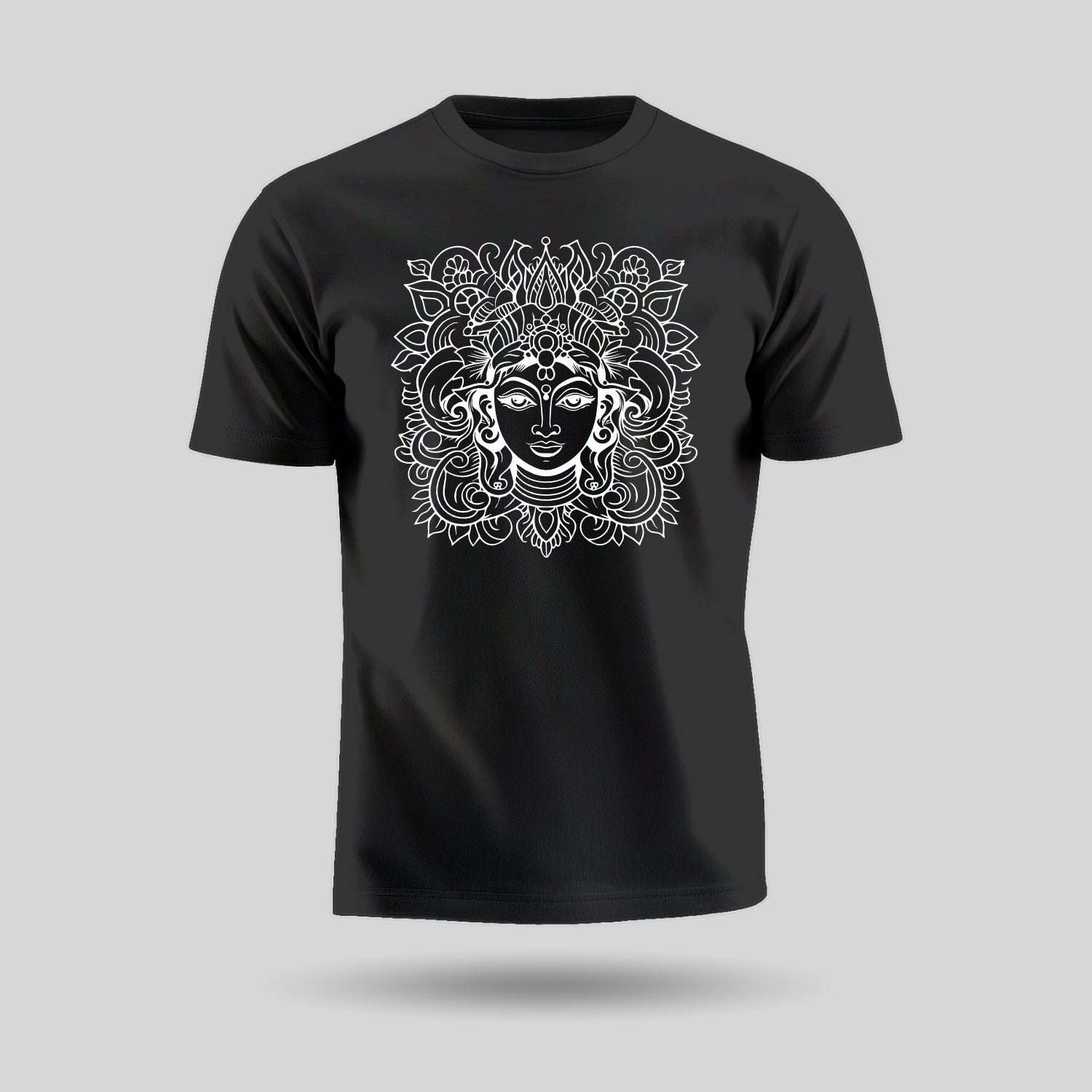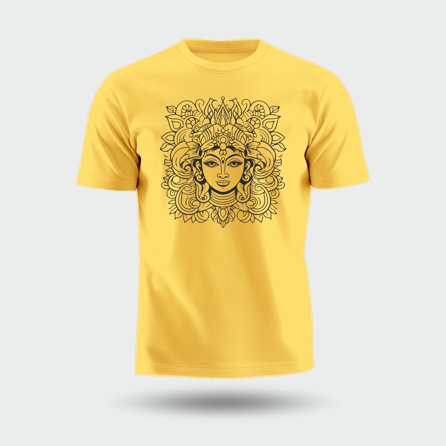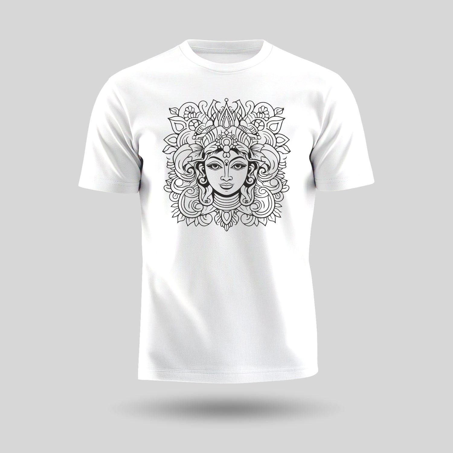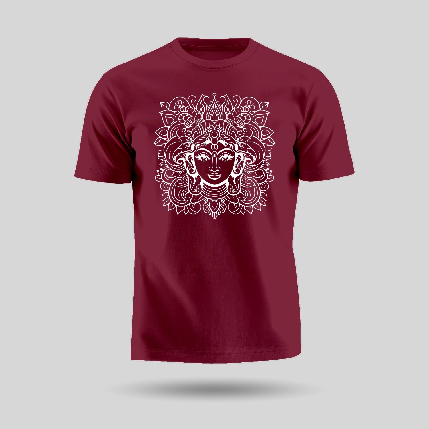 Celebrate the serene yet powerful presence of Maa Durga with Luv My India’s pure cotton unisex round neck T-shirt. This design captures her divine aura in an elegant portrait that radiates calm strength, fearless spirit and nurturing grace.