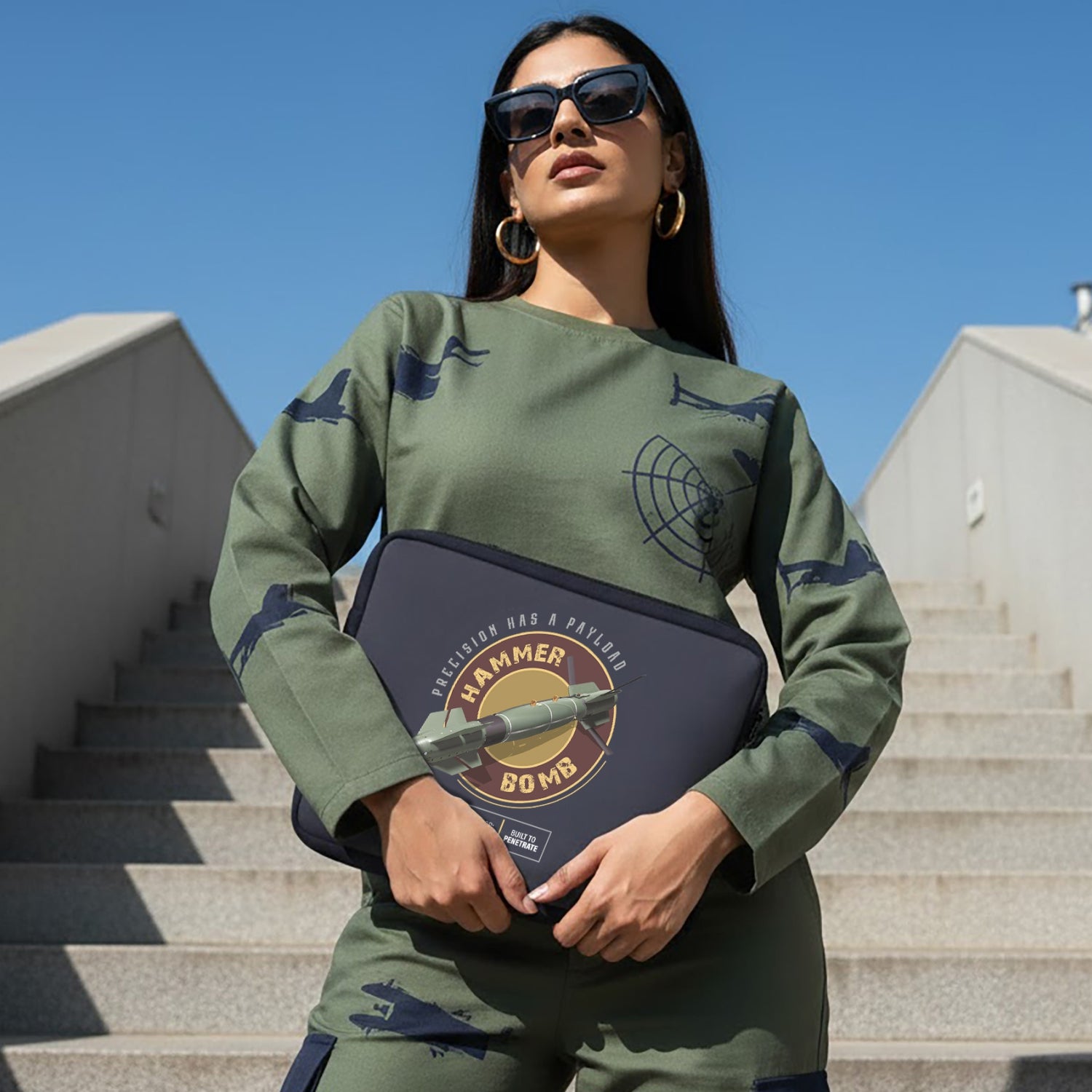 Luv My India’s HAMMER Bomb themed waterproof Laptop Sleeve Bag celebrates the fusion of smart technology and unflinching courage. Engineered to strike fortified targets with pinpoint accuracy, HAMMER rose to national recognition during India’s swift response operations. Carry it as a mark of India’s strategic strength and fearless clarity.